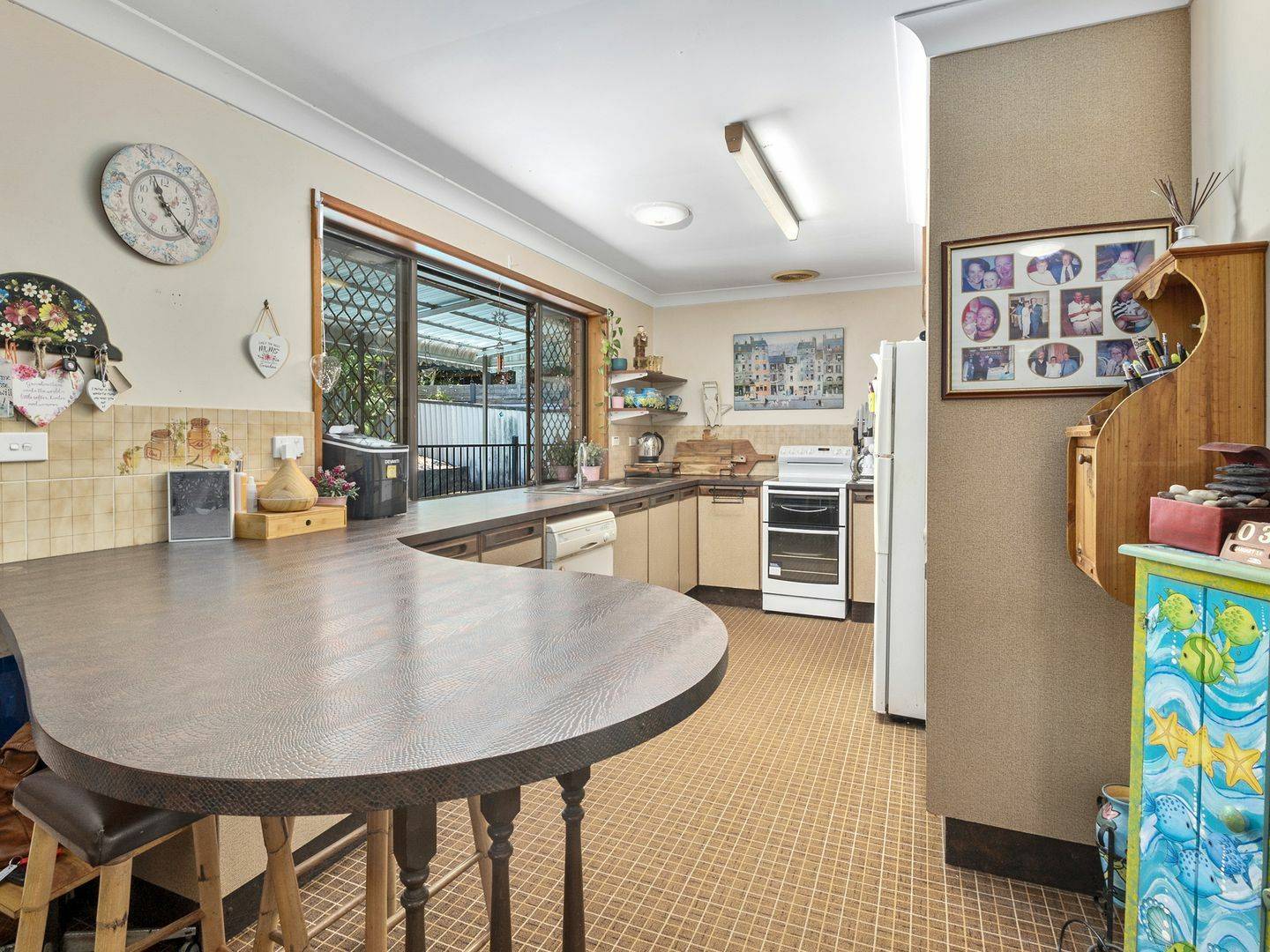 • Well positioned kitchen that looks out to pool area