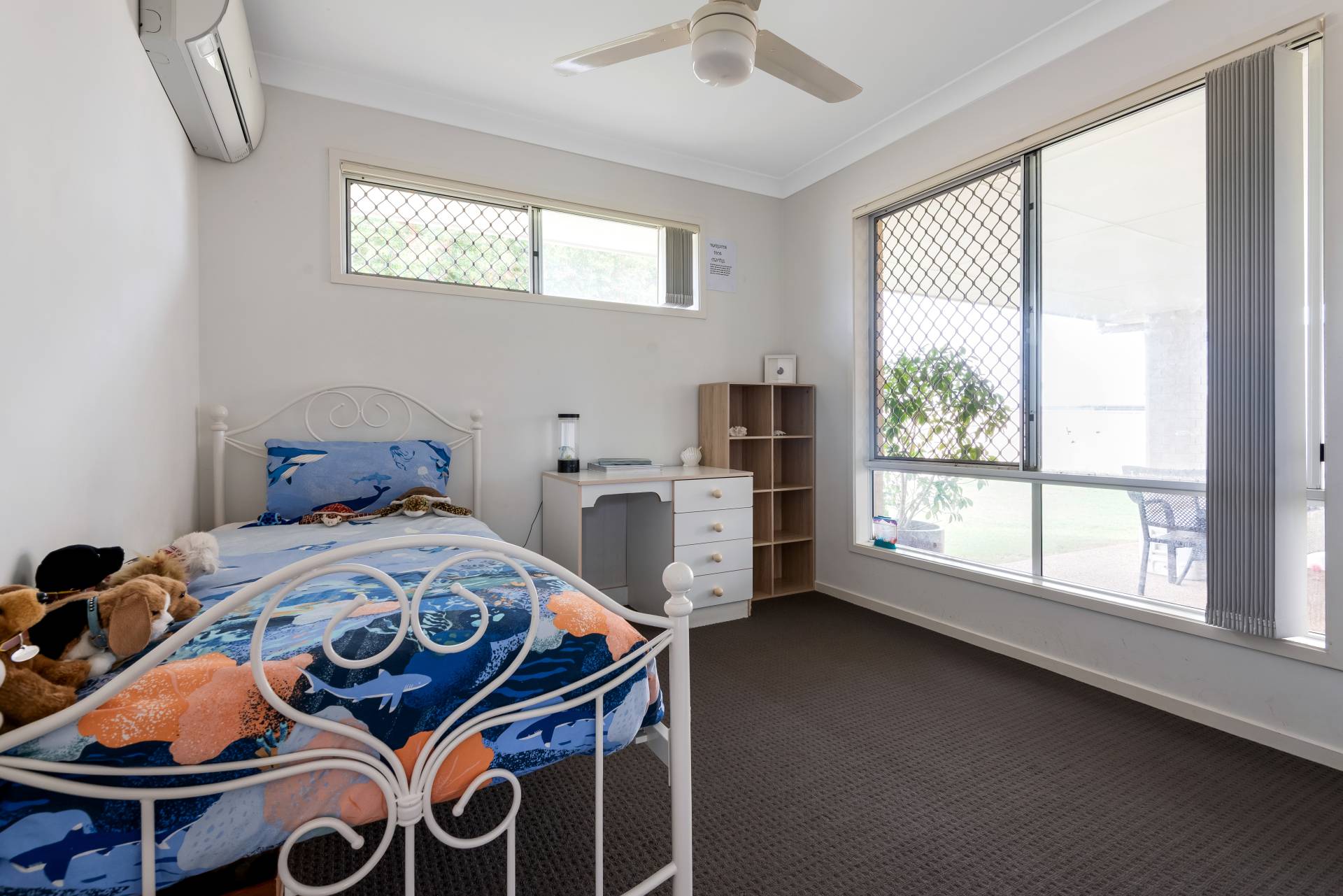 Stay cool with air conditioning and ceiling fans throughout. The spacious open-plan family, kitchen, and dining area is designed for both functionality and style. Complete with modern stainless-steel appliances, complemented by an under-roof patio, perfect for outdoor dining or relaxation.
