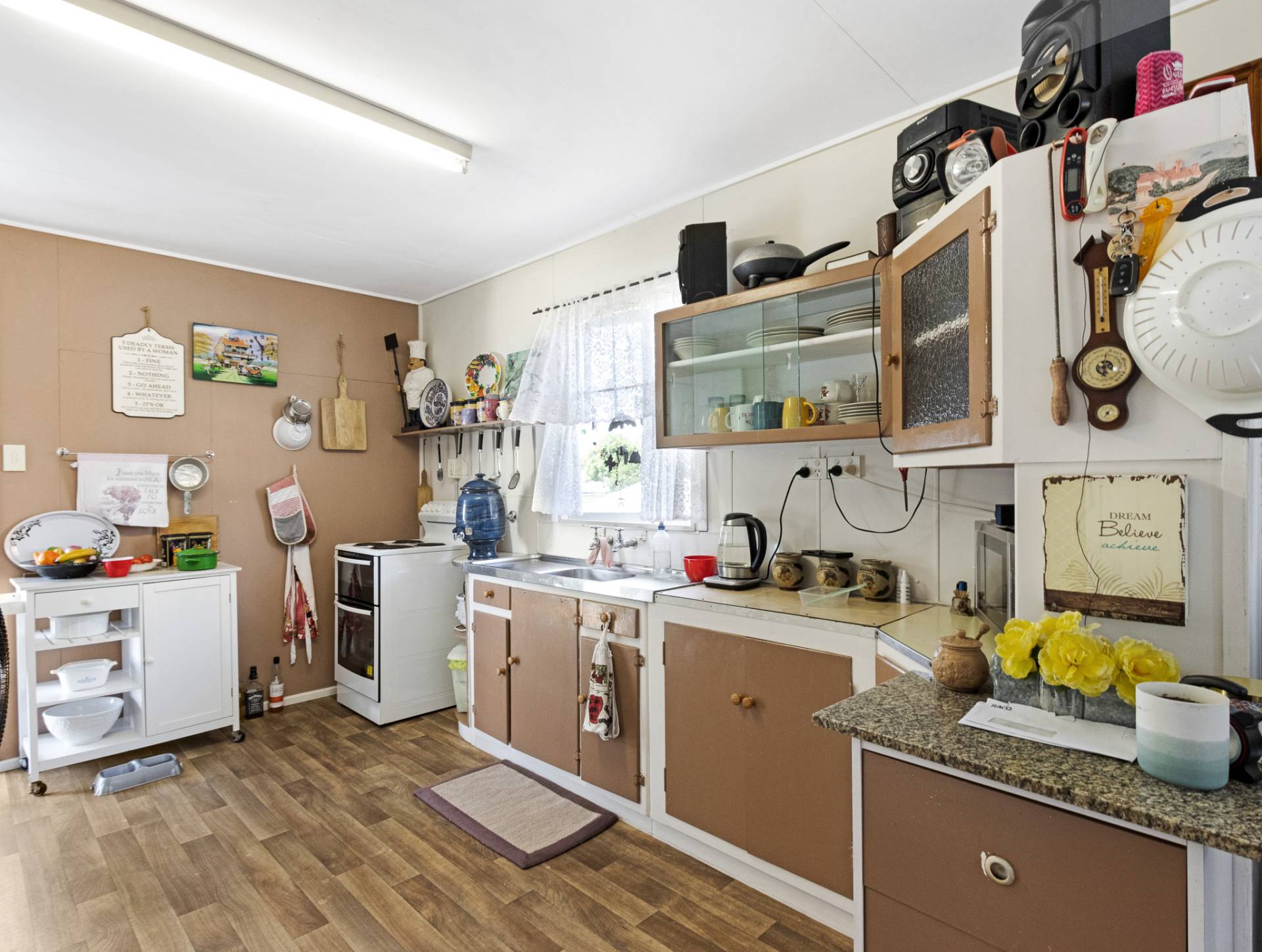 - Practical Kitchen with stand-alone electric oven/stovetop and plenty of bench and storage space