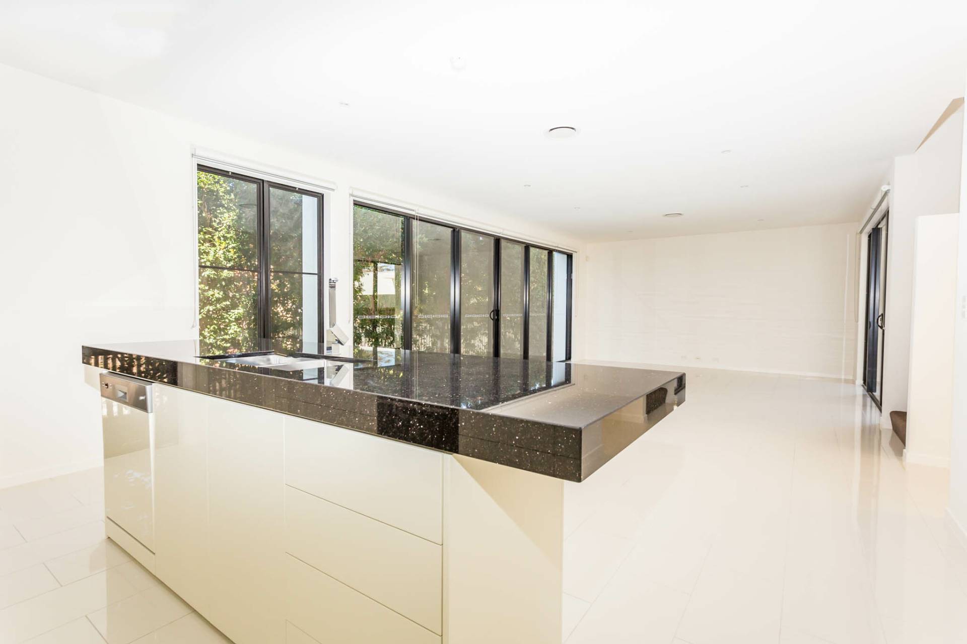 The open plan living, dining and kitchen seamlessly flow throughout the lower level of the home with direct access through double sliding doors to the professionally landscaped European gardens, and serene lakeside views. The ultra-modern kitchen offers granite bench-tops with a sought after gas cooktop, top-of-the-range appliances. As you ascend to the second level you'll be greeted with the sanctuary of the primary bedroom. A desirable walk-in robe and a pristine ensuite. The other two bedrooms offer an abundance of light and space, with built-in robes and ceiling fans. A study nook completes the home.