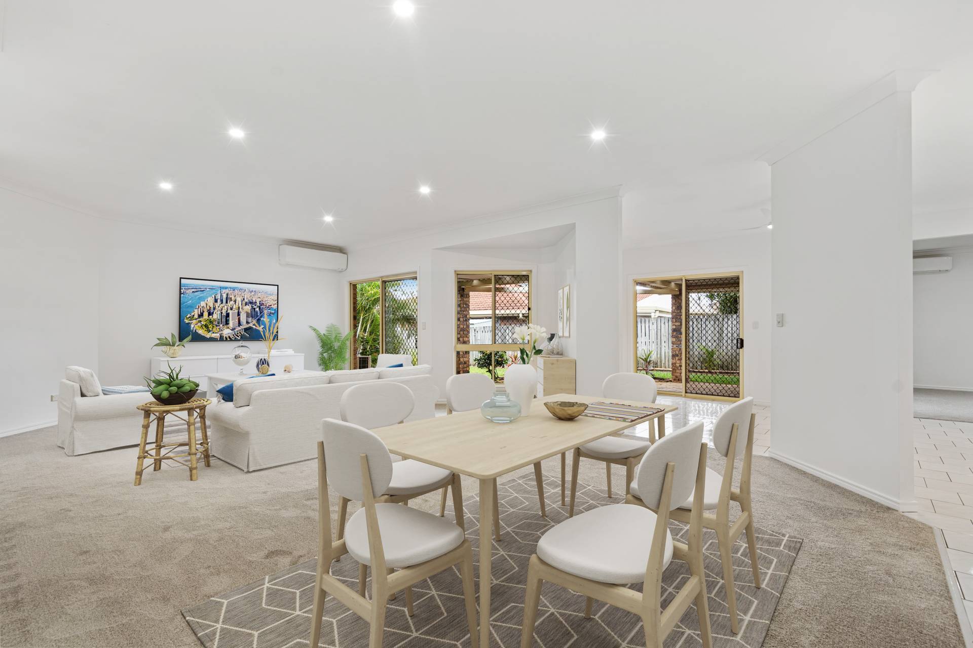 The formal air-conditioned Living /Dining area is extremely generous and cleverly positioned in the centre of the house to service meal time and relaxing lounge down-time.