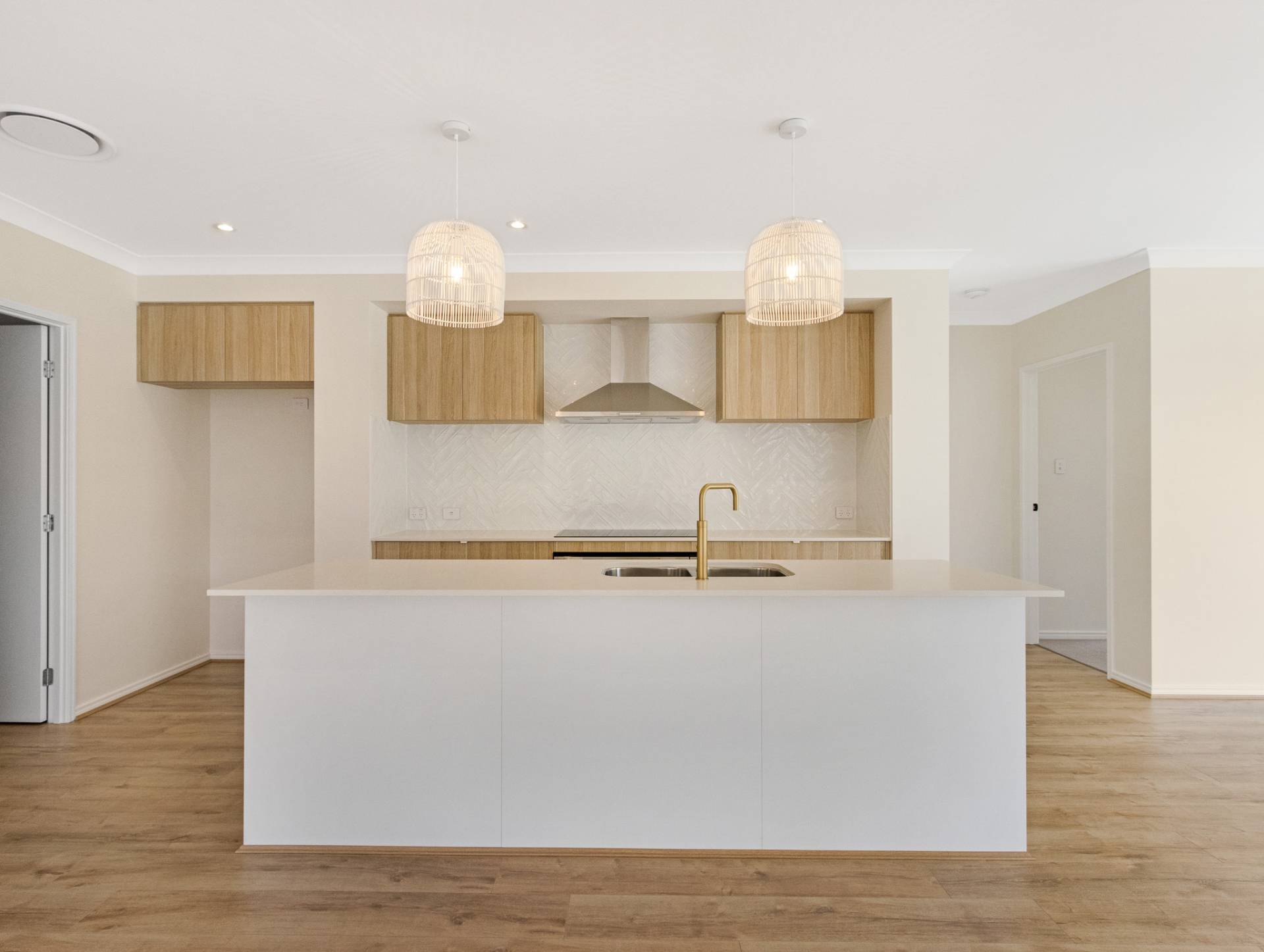 The centrepiece of the home is undoubtedly the stylish, air conditioned modern kitchen, which features stunning stone benchtops, gold tapware induction cooktop, 900mm electric oven, island benchtop,  dishwasher, soft close cupboards,  walk in pantry and plenty of cupboard and bench space. This sleek and functional space is perfect for everyday family living and effortless entertaining.