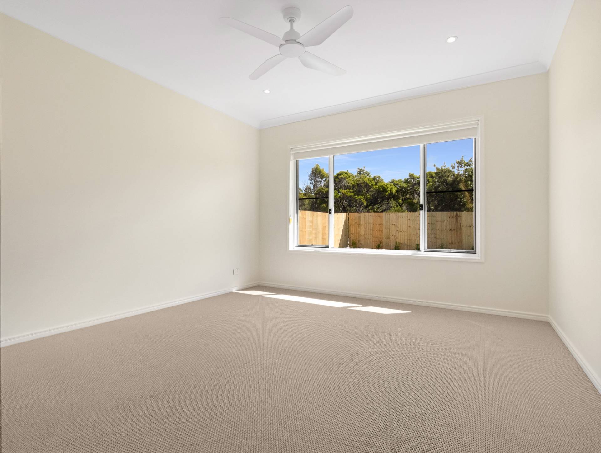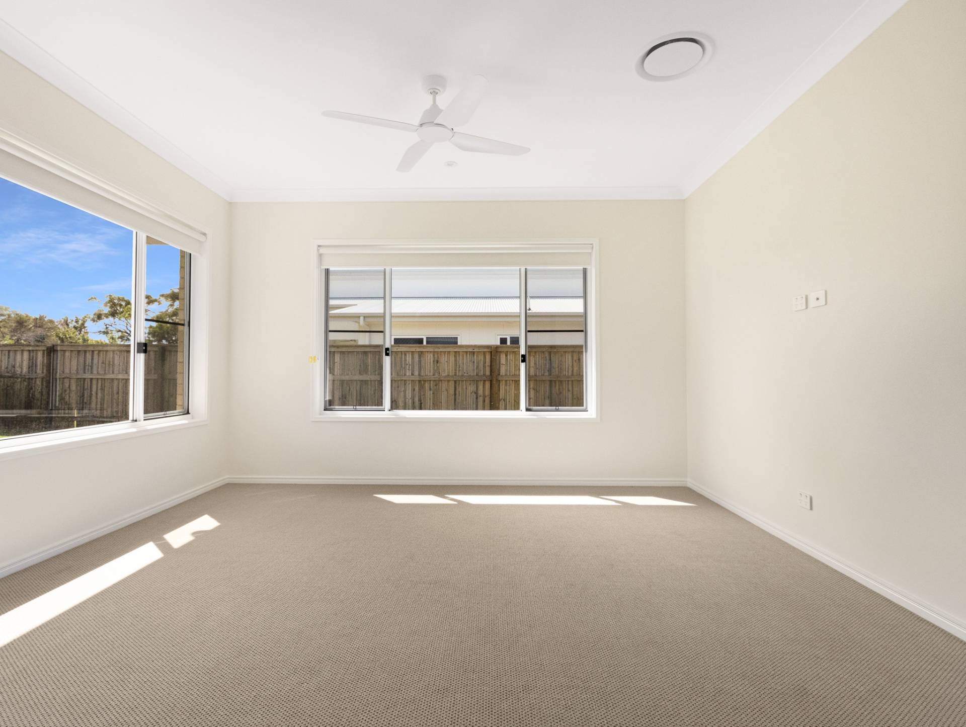 The air conditioned master suite boasts a spacious layout with a resort style ensuite, walk through robe and ceiling fan.