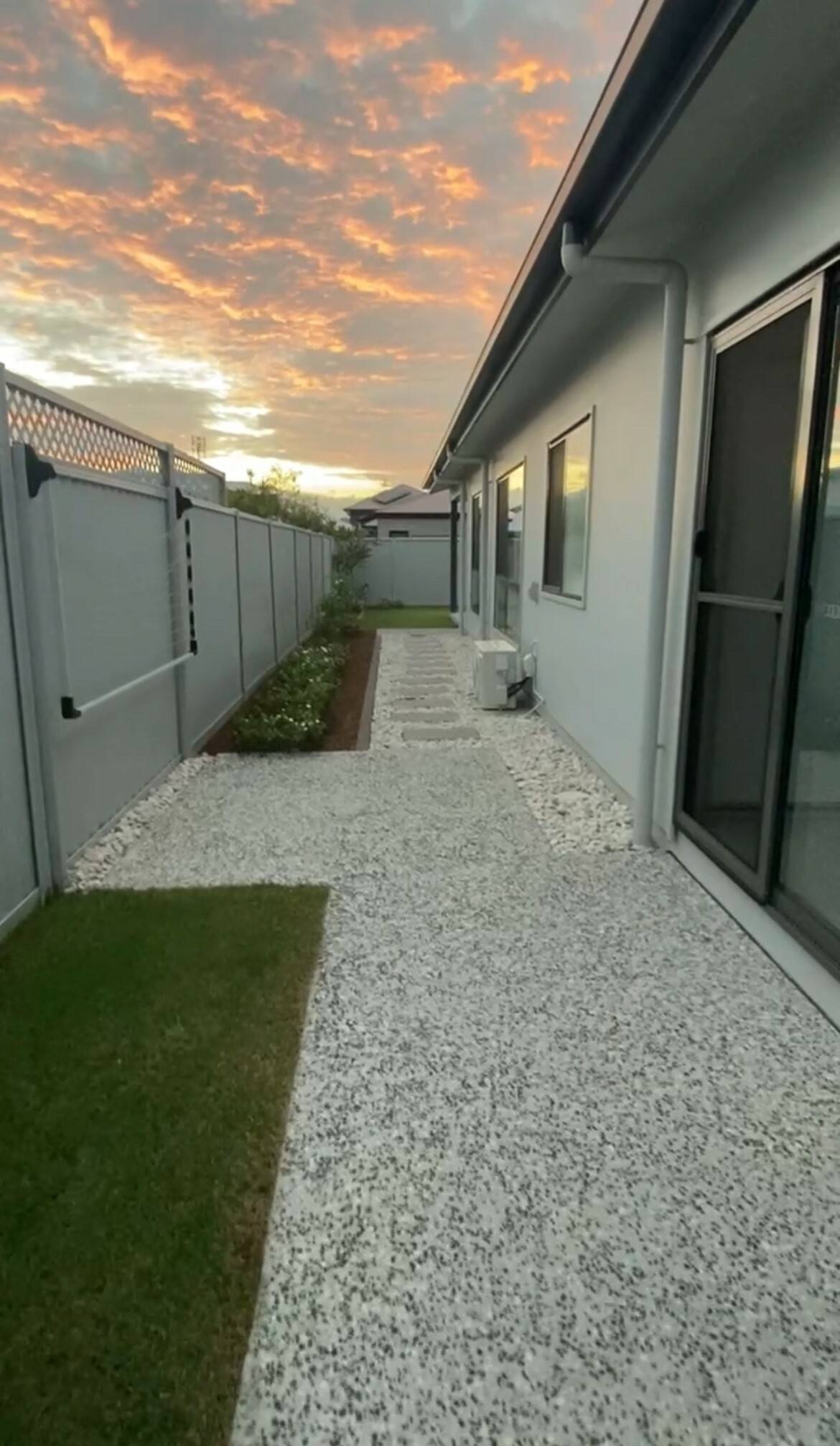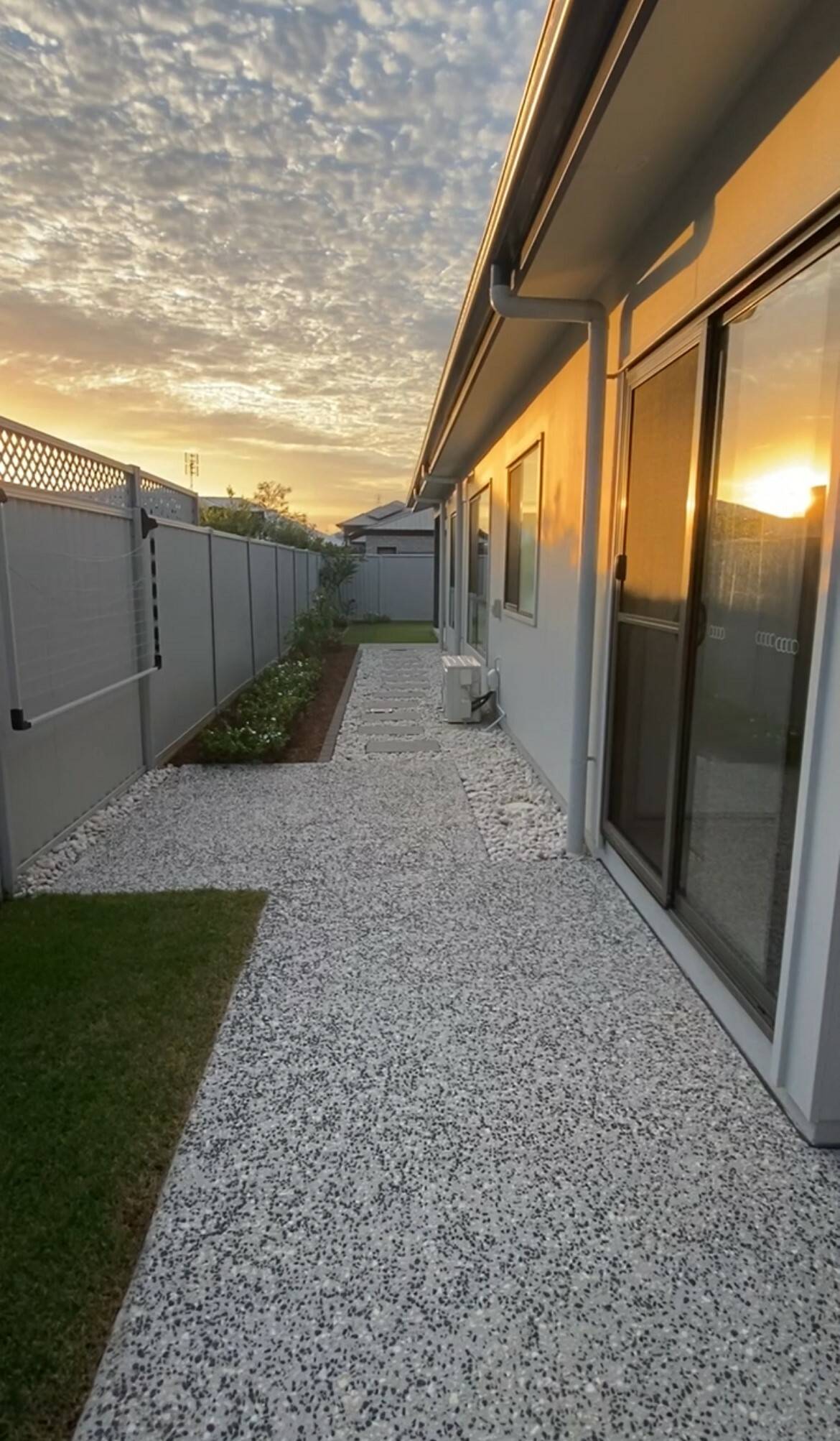 • Pebbled paths down both sides of the home for tidy, low-maintenance living