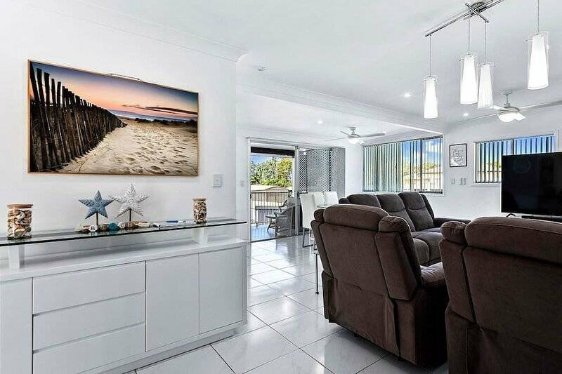 UPSTAIRS ONLY - Looking for a memorable getaway where relaxation and adventure meet? Our Happy Place offers the ultimate home-away-from-home experience, just a short stroll from the stunning beach! Ideal for families, this modern unit offers 4 bedrooms ( 3 x queen & 1 x single ). You'll have full access to the pool, perfect for cooling off on those hot days.Other things to notePool house is available for an additional $100 per night and $100 cleaning fee. This will provide your guests with an additional two-bedroom unit (1 x double & 3 x single) with air conditioning in the open plan kitchen / lounge area.