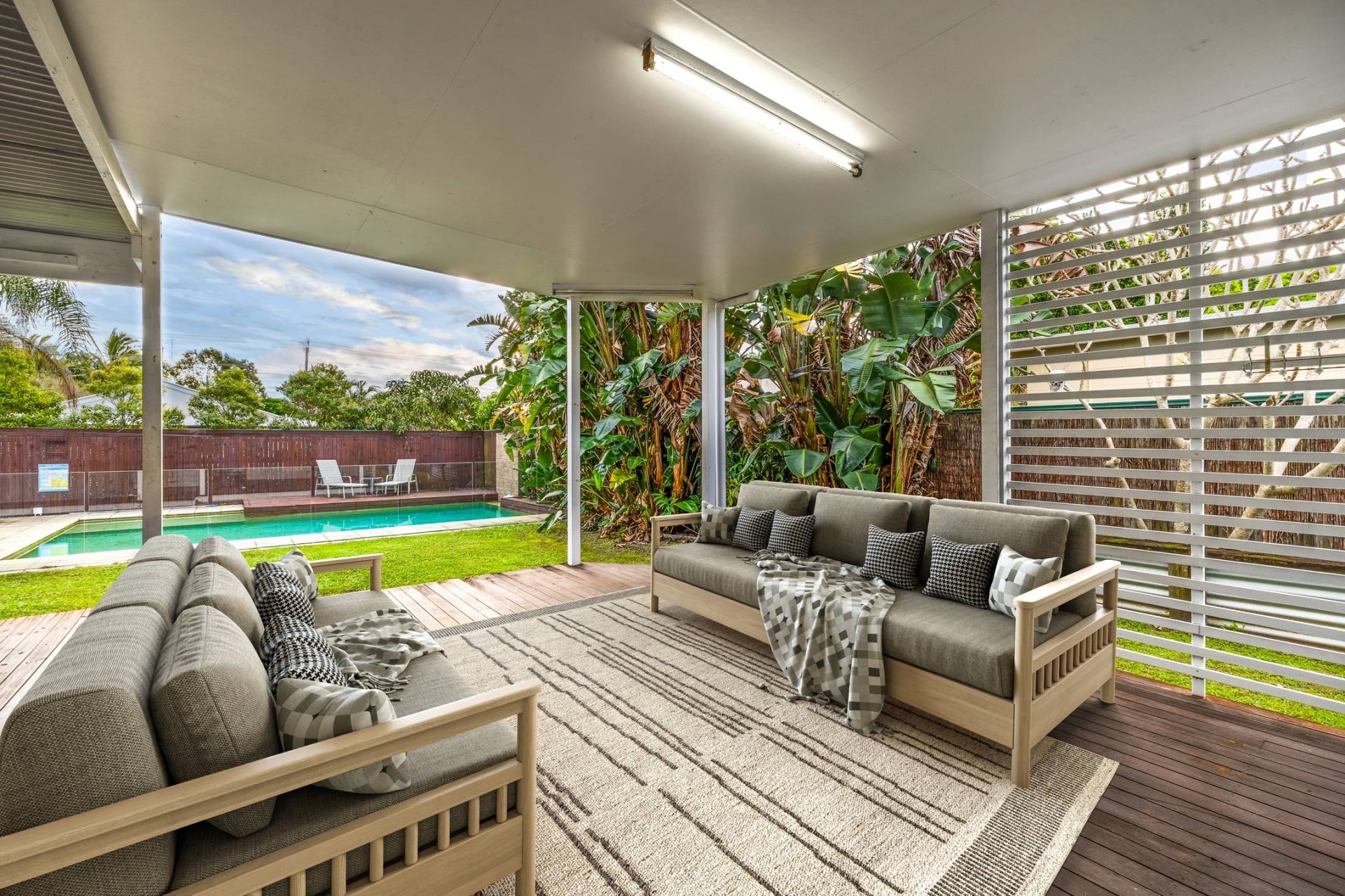 Step outside to your private backyard oasis. A timber deck overlooks the large inground swimming pool, making it the perfect spot to relax or host weekend barbecues.