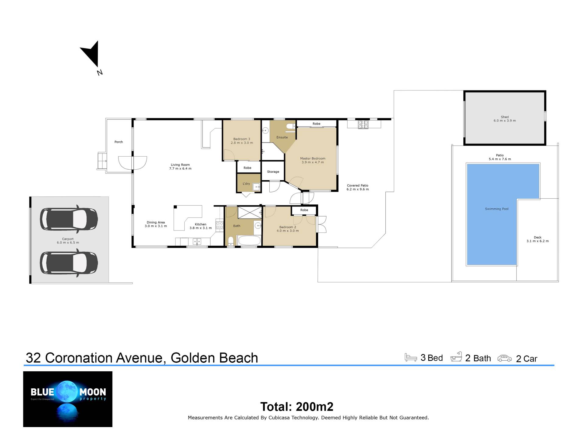 The vehicles will be accommodated with a double carport with remote door and storage will never be an issue with a large shed tucked away in the back corner of the yard.