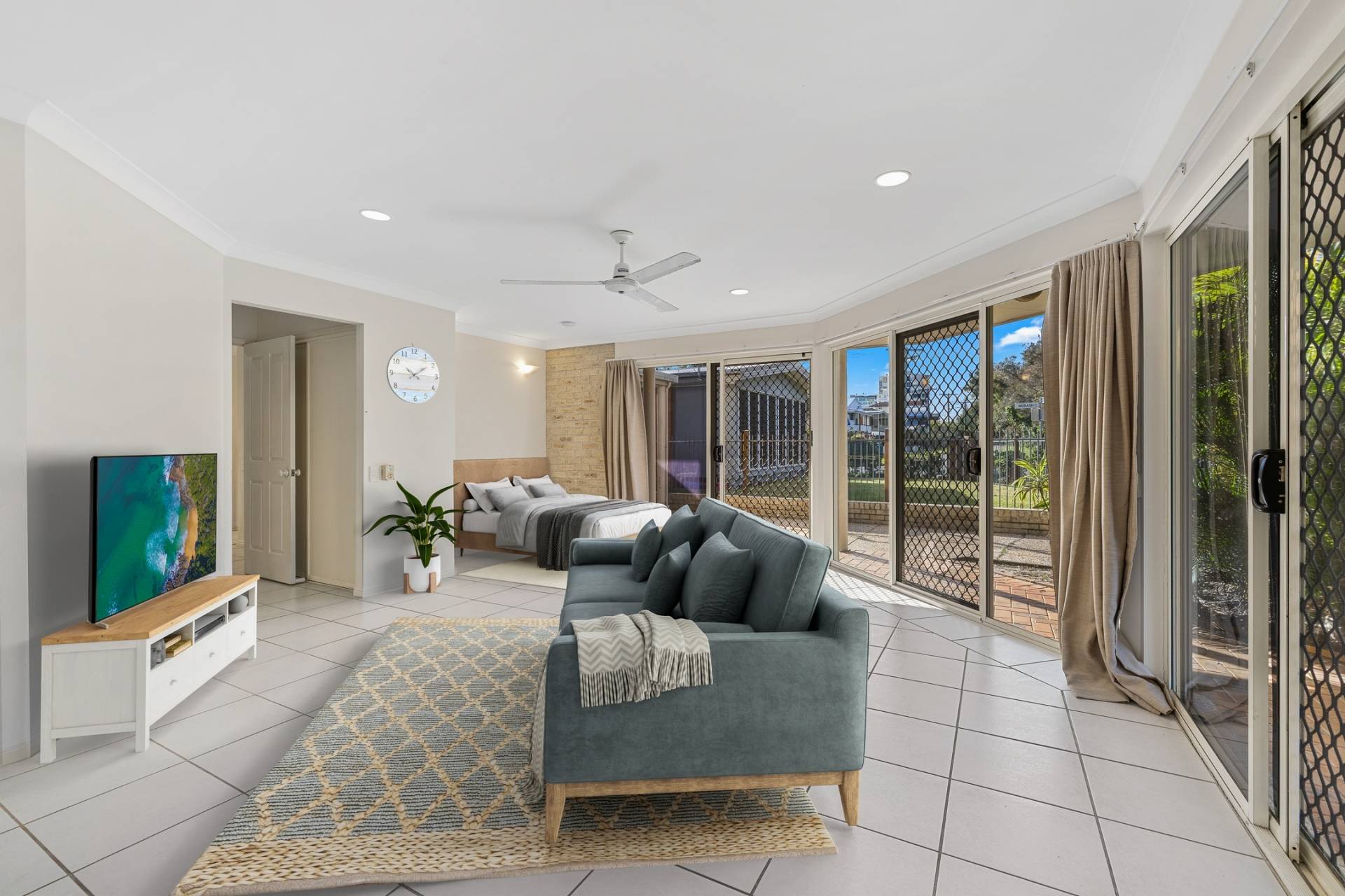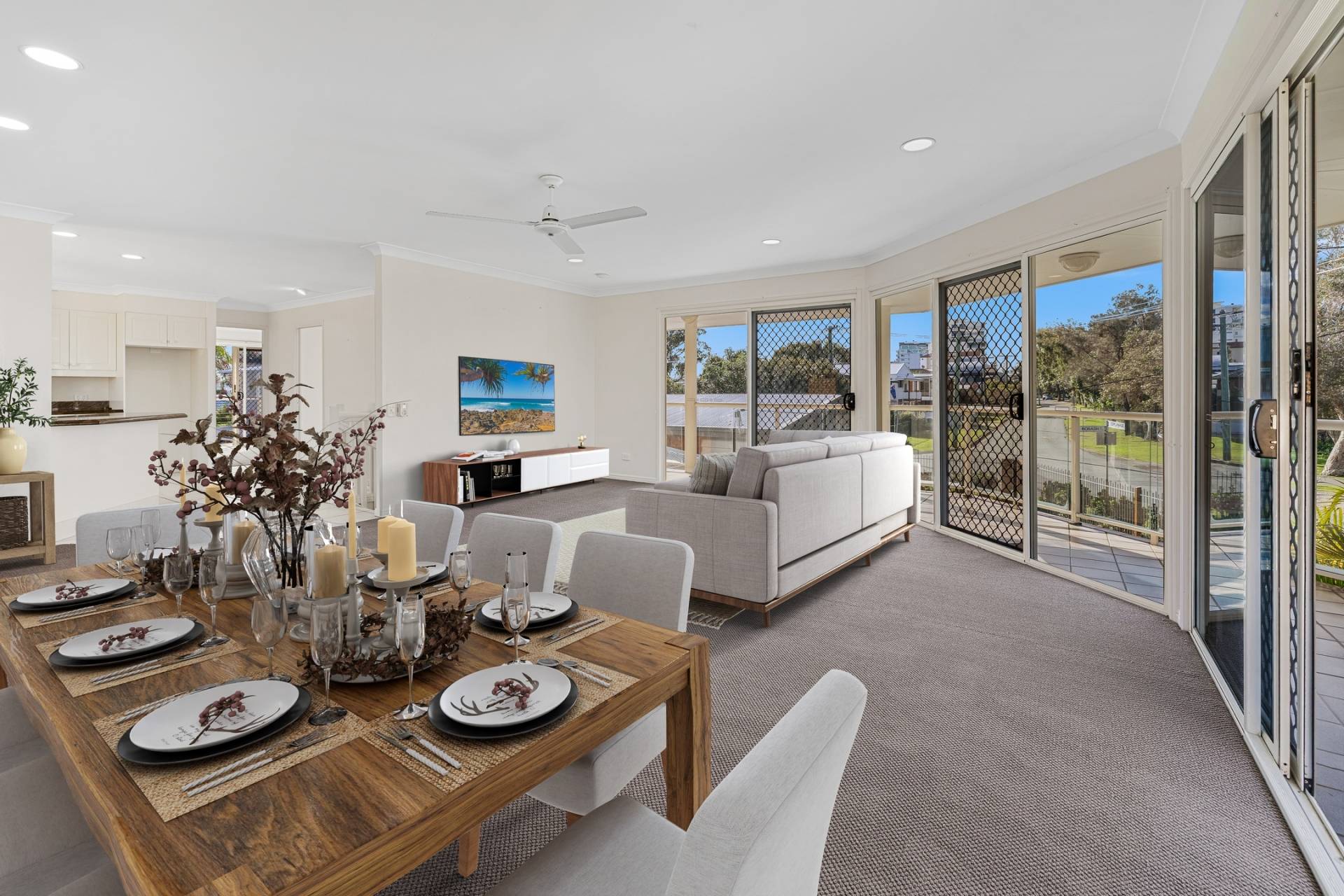 Directly opposite the sparkling waters of the Pumicestone Passage this highset brick home presents a rare opportunity to secure an exclusive slice of Golden Beach paradise.