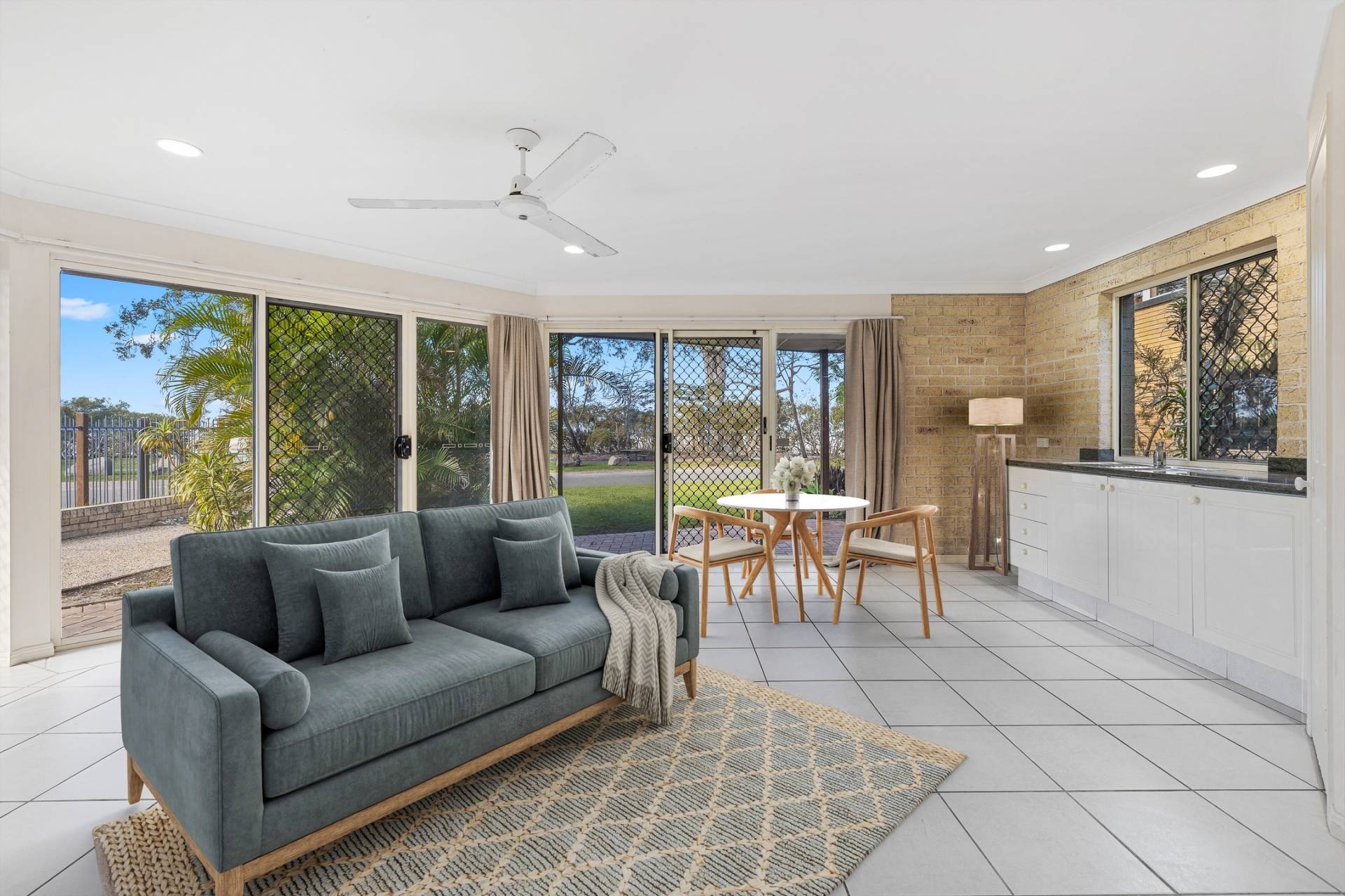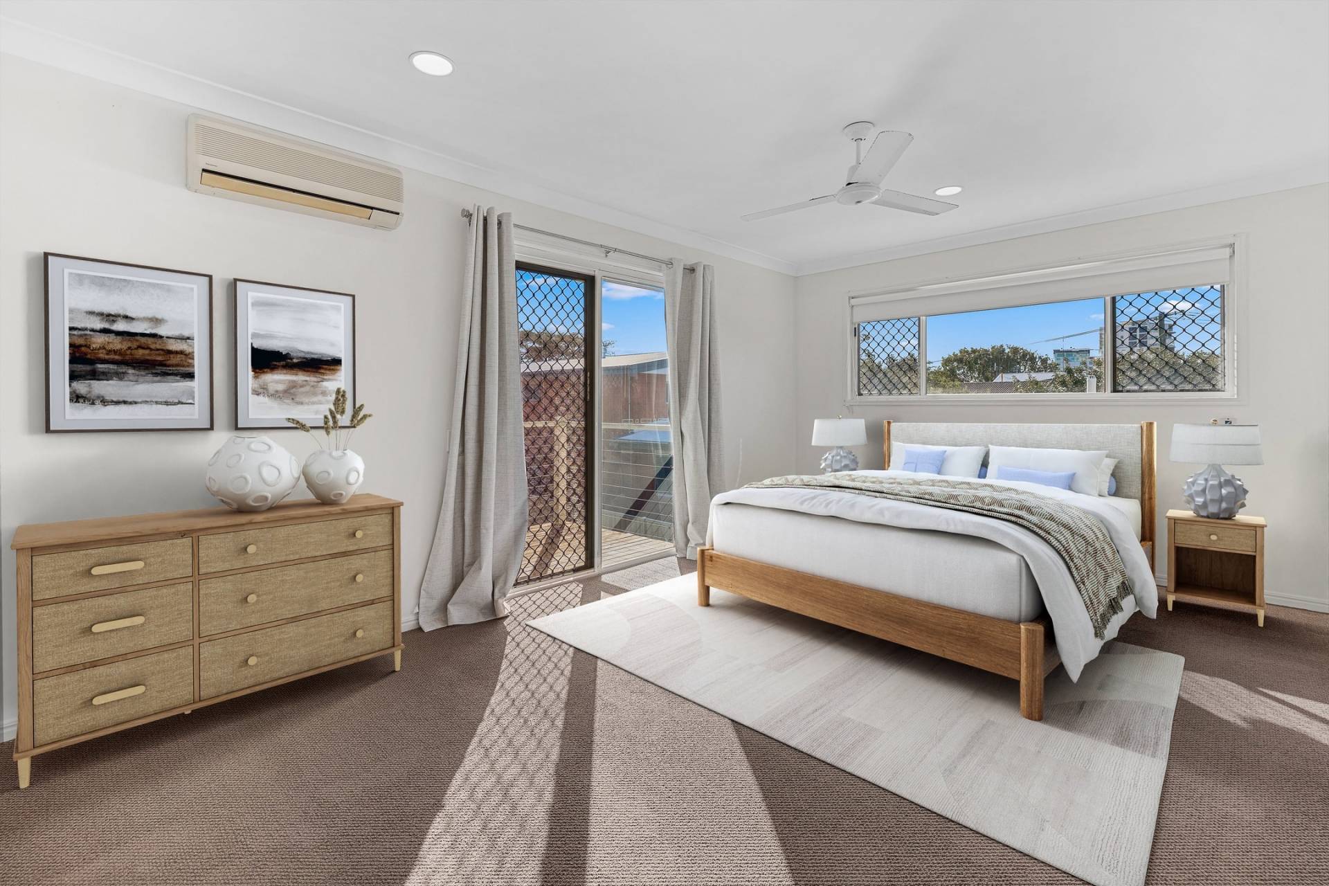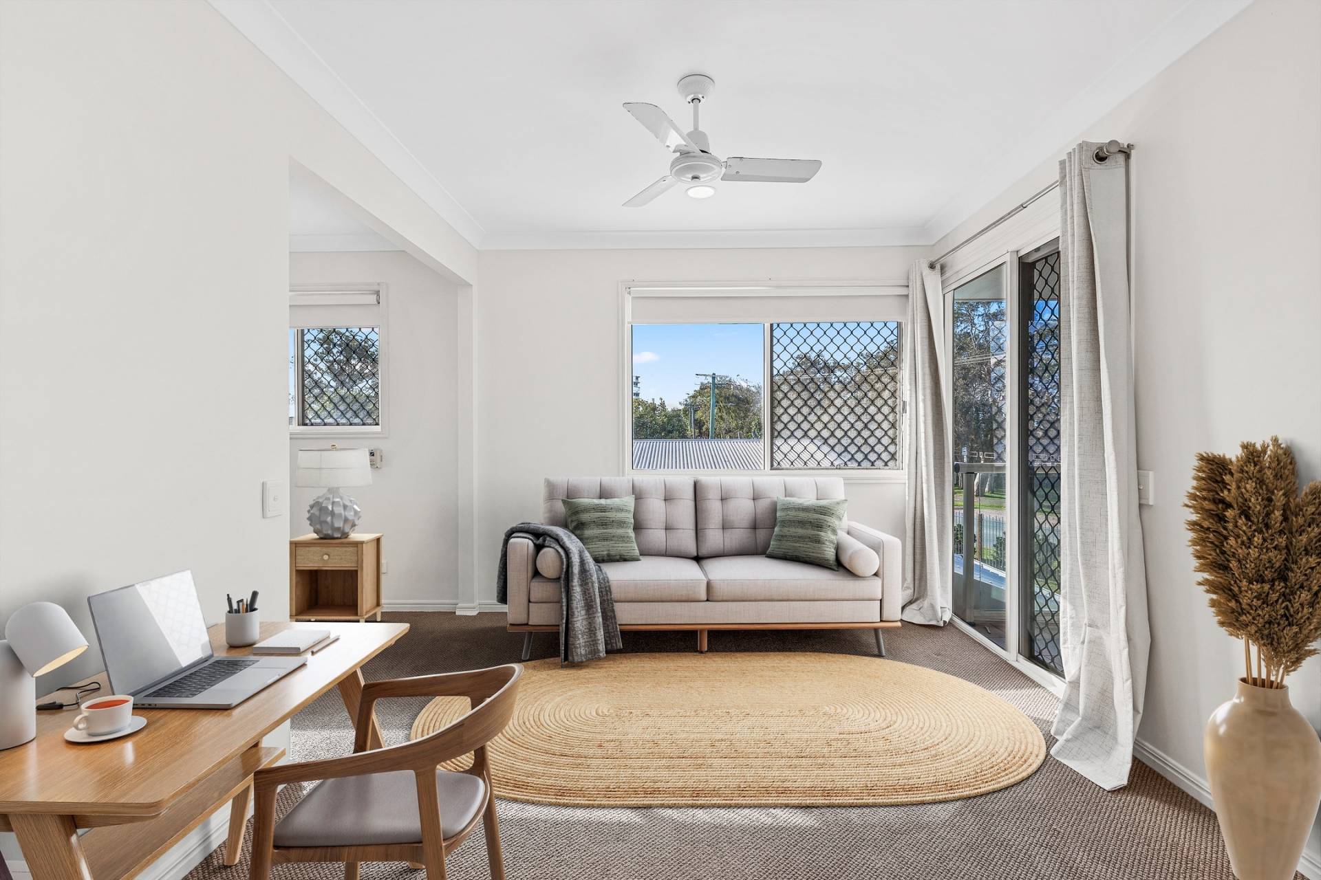 Dual living potential with a self-contained area large enough to be used as a studio bedroom with living quarters in addition to two generous sized bedrooms with built-in robes and ceiling fans.