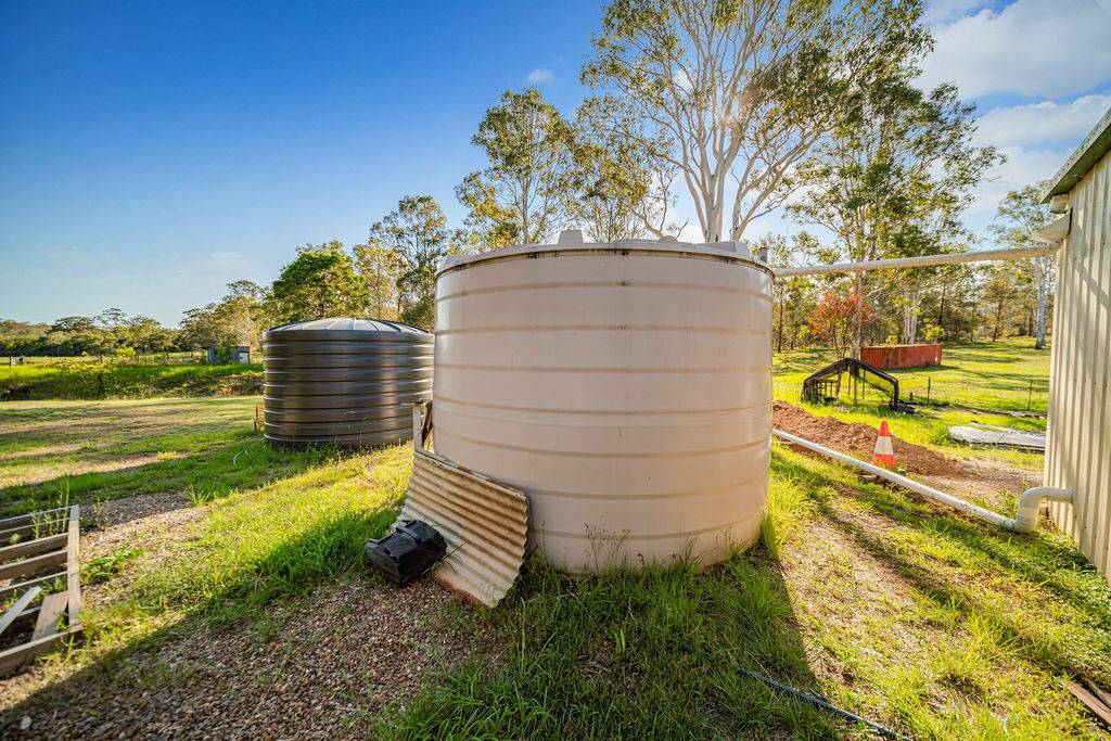Nestled on approximately 9.2 acres of pristine land, this property boasts a breathtaking bushland backdrop that envelopes you in the serenity of nature. One of the standout features of this property is its commitment to eco-friendly systems. It is fully self-sustaining with a state-of-the-art solar panel system, complete with battery storage, ensuring you have a continuous and reliable source of electricity. The large 8x7 shed comes equipped with 15 solar panels, providing ample power for all your needs. The solar system is crafted by the reputable Brisbane-based company, Red Earth Energy, guaranteeing efficiency and durability.