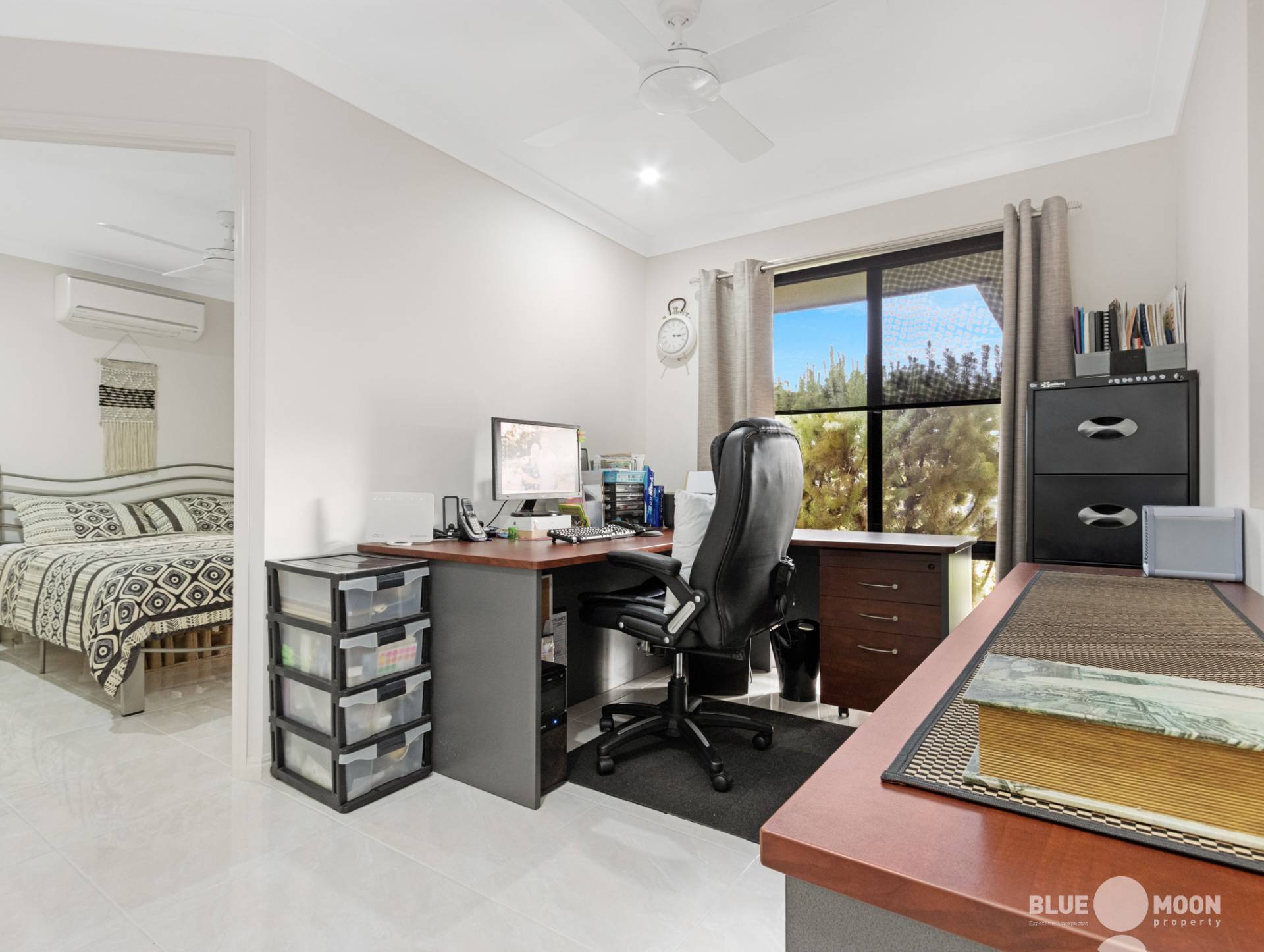 The home provides a choice of four well-sized bedrooms, including an air-conditioned master suite with ceiling fan, walk-in robe and ensuite bathroom. The guest bedrooms come with built-in robes and ceiling fans, ensuring comfort and functionality flow throughout this well-designed abode. The study, with ceiling fan and large central window, could also be tailored to your individual lifestyle needs offering the perfect place for a home office, hobby space or artwork display area.