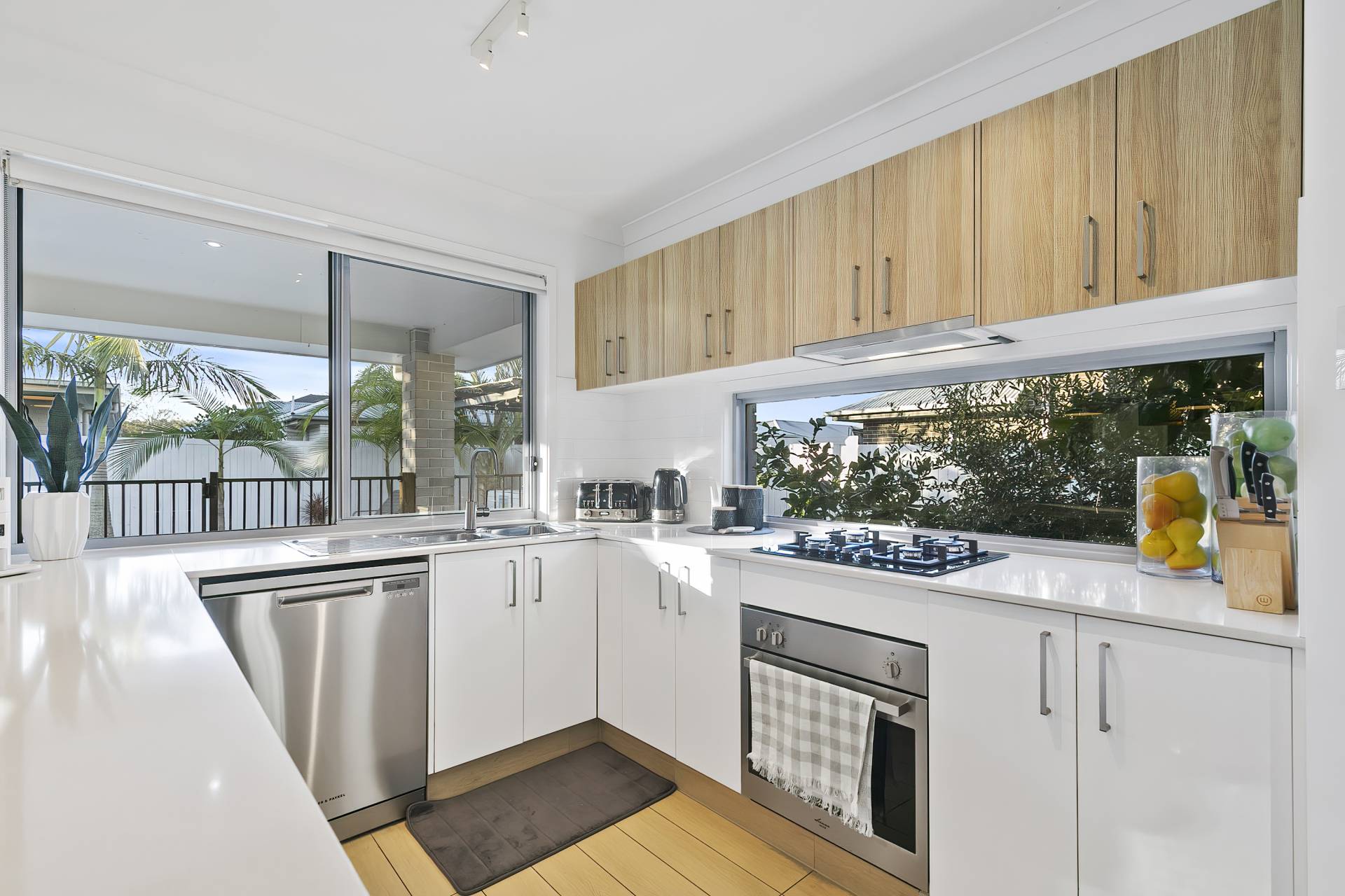 - Electric appliances in a well-appointed kitchen that overlooks the living and outdoor areas