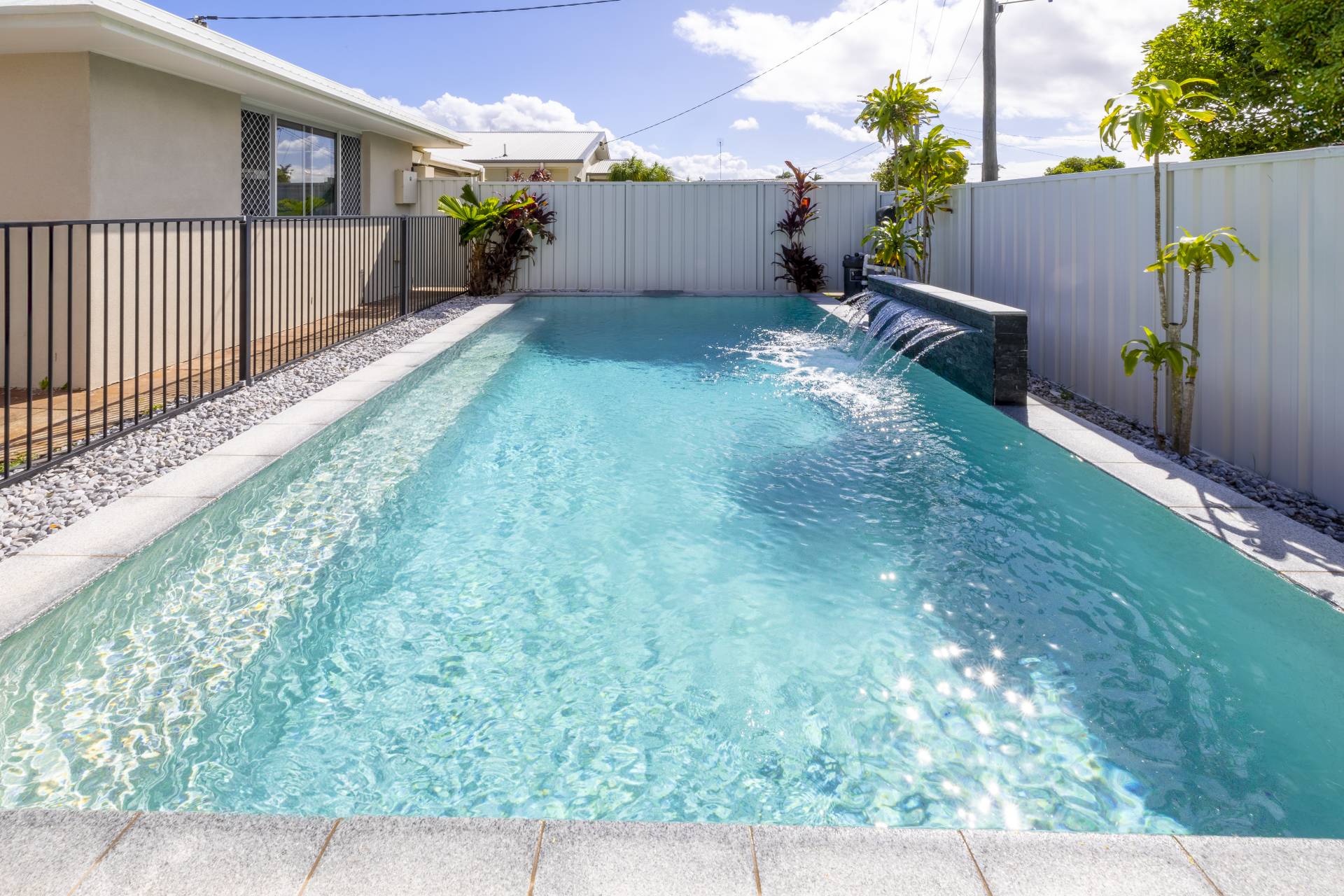 • Open plan tiled living area that leads out to the patio overlooking the sparkling in-ground swimming pool