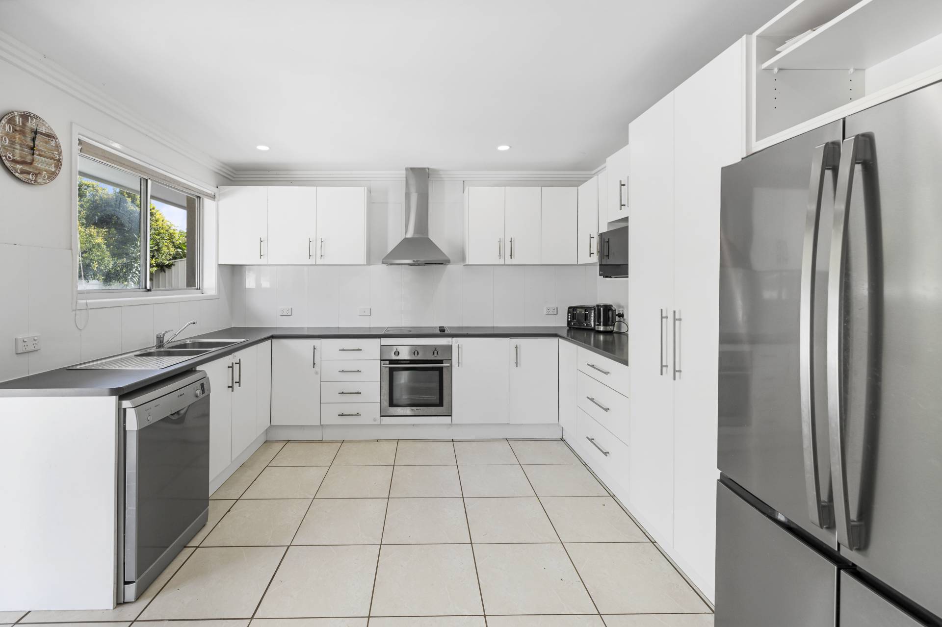 • Large kitchen with upright electric stove, plenty of bench space and loads of storage room