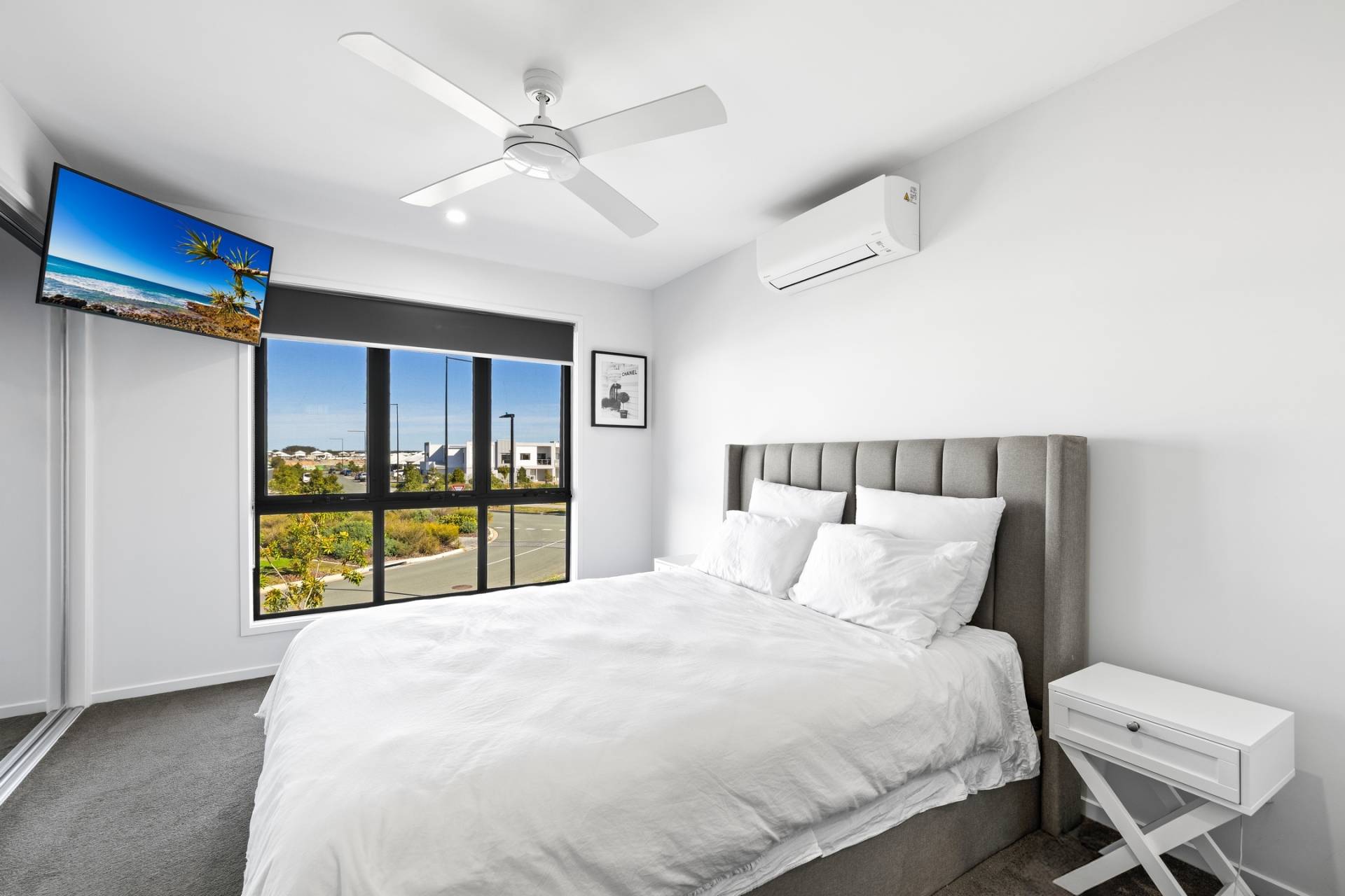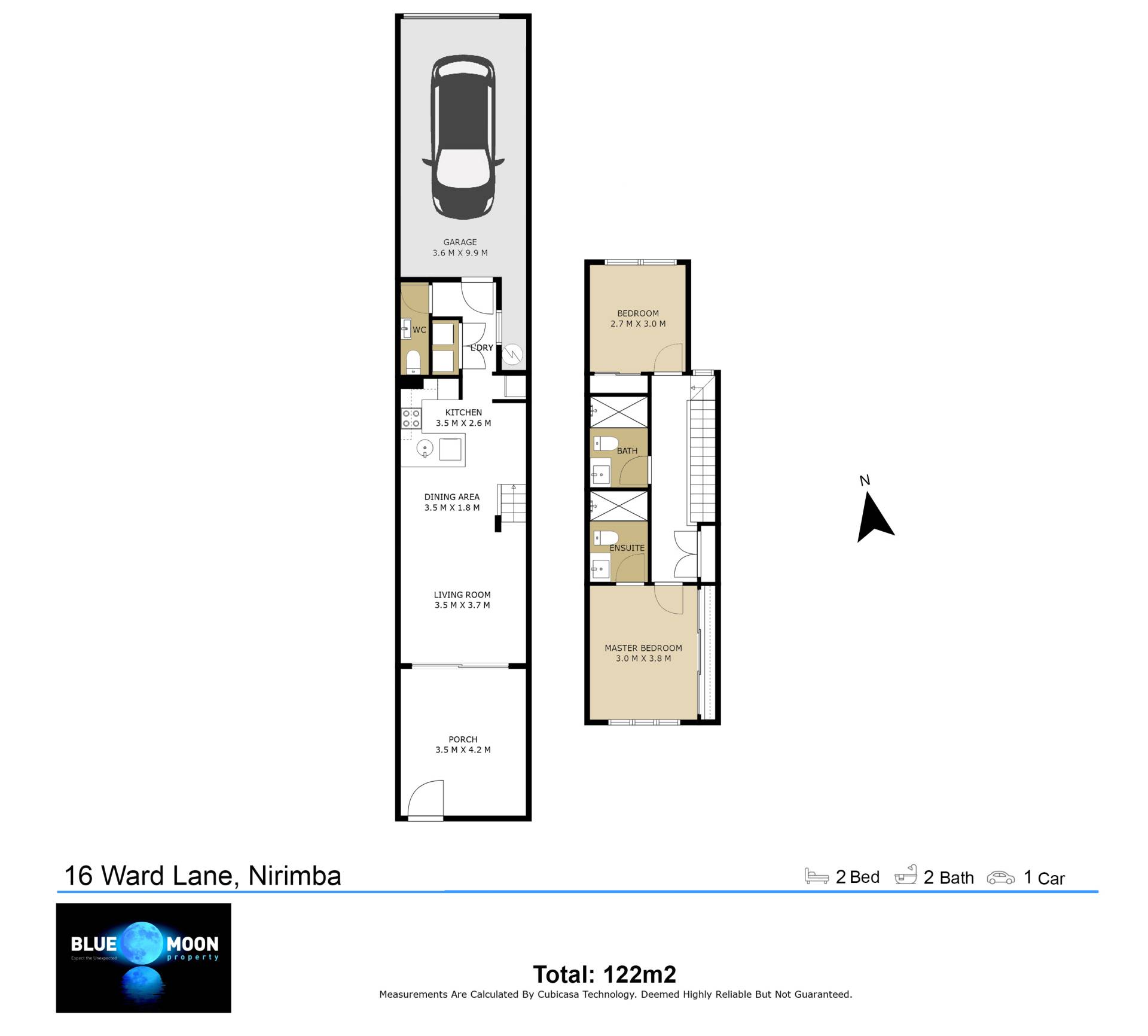 Upstairs, you'll find two generously sized bedrooms with built-in robes and ceiling fans. The master bedroom is a standout with an ensuite, split-system air-conditioning, TV points, and plenty of natural light.