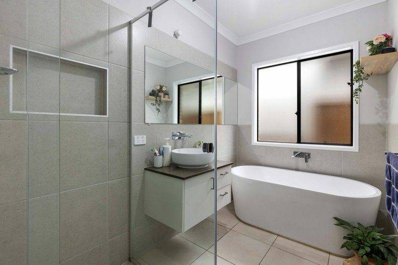 The main bathroom includes a deep soaker tub and separate shower, ideal for unwinding after a long day. Step outside to a covered alfresco area and easy-care backyard, perfect for entertaining or enjoying quiet afternoons.