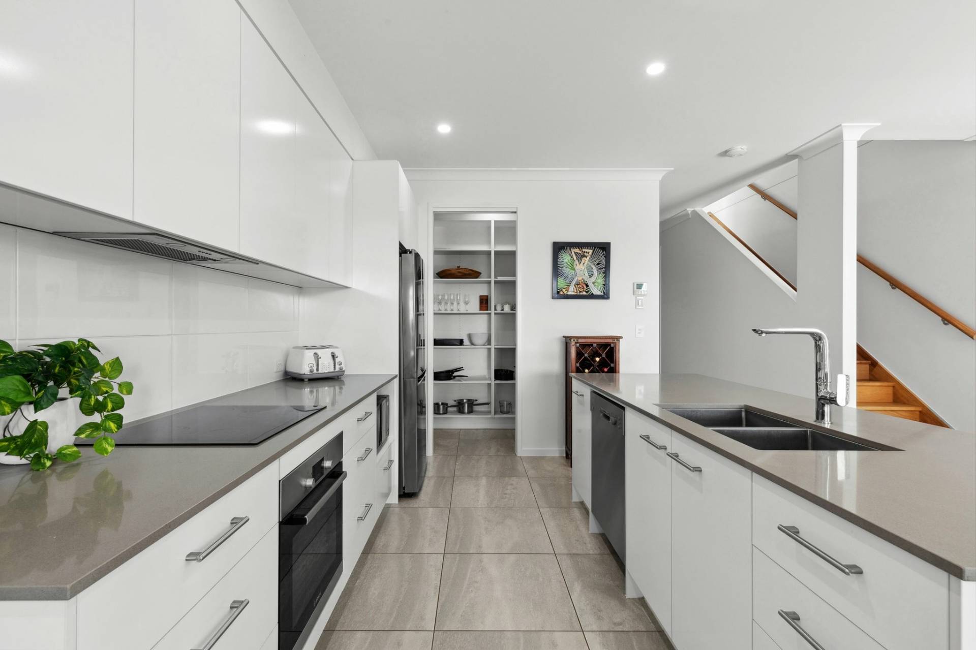 • Stylish open-plan kitchen with modern appliances including stovetop, oven, dishwasher, microwave, and space for your own fridge/freezer