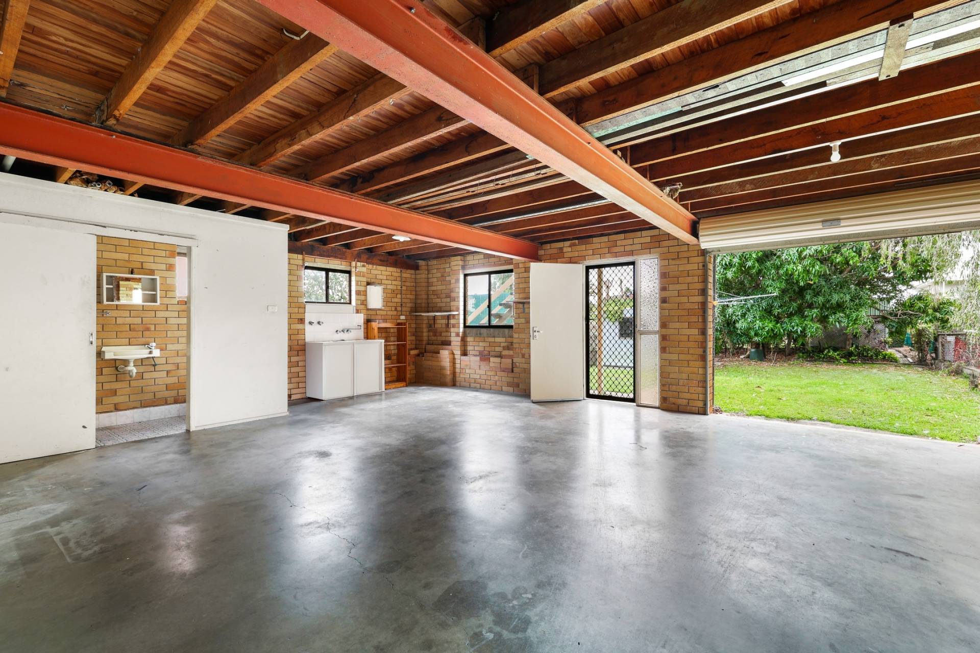 • Tandem style garage that would easily accommodate three cars. Internal access and ample space for a workshop or storage while providing a roller door to access the back yard