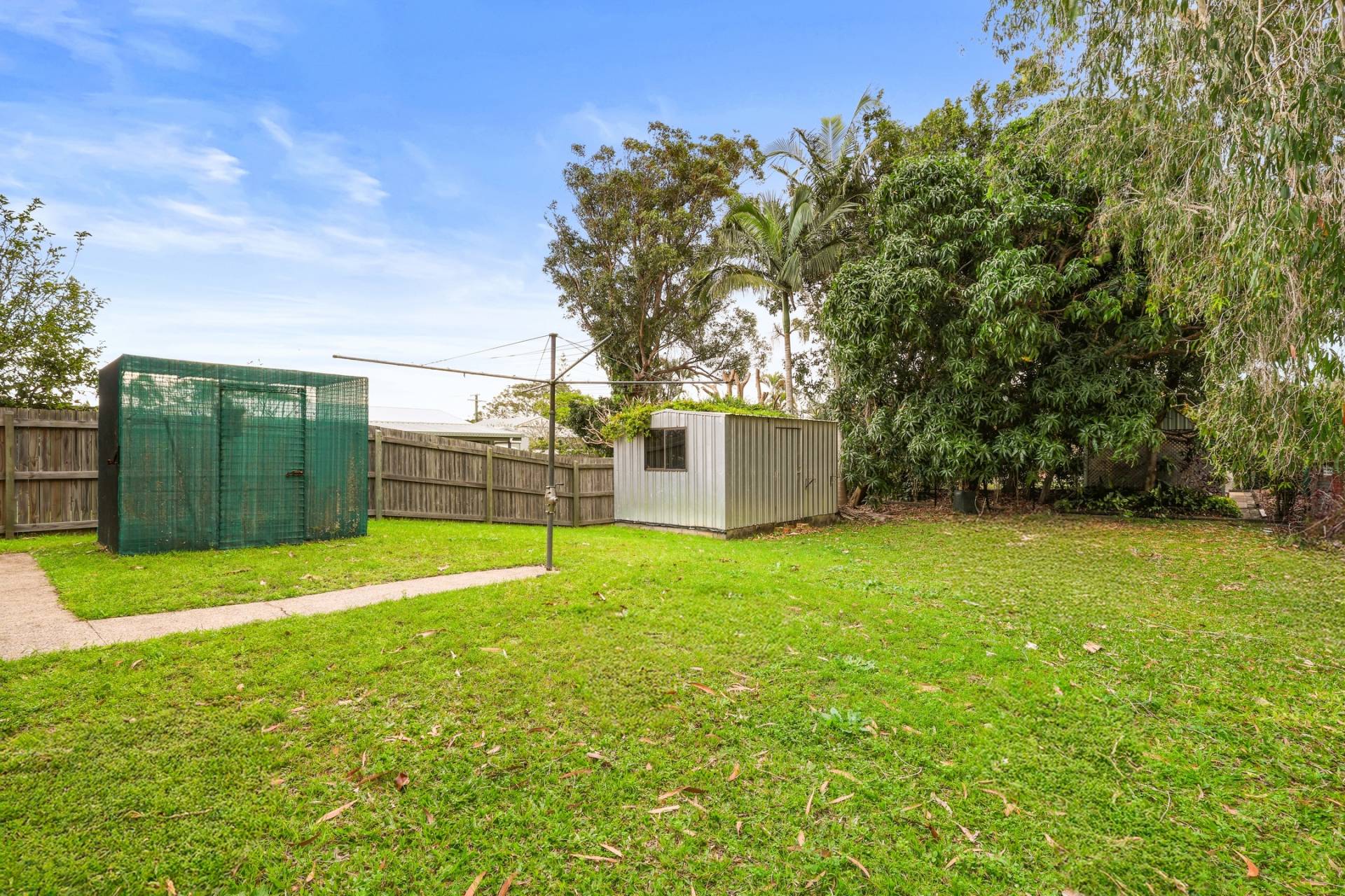 • Fenced backyard with garden shed
