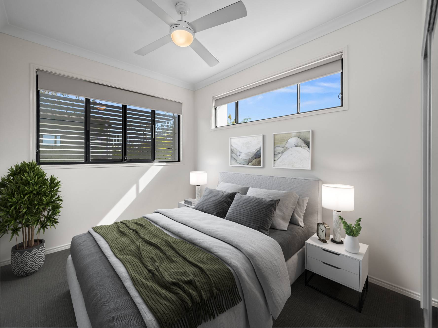 • Spacious main bedroom with walk-in robe, air conditioning, ceiling fan, ensuite, and private balcony