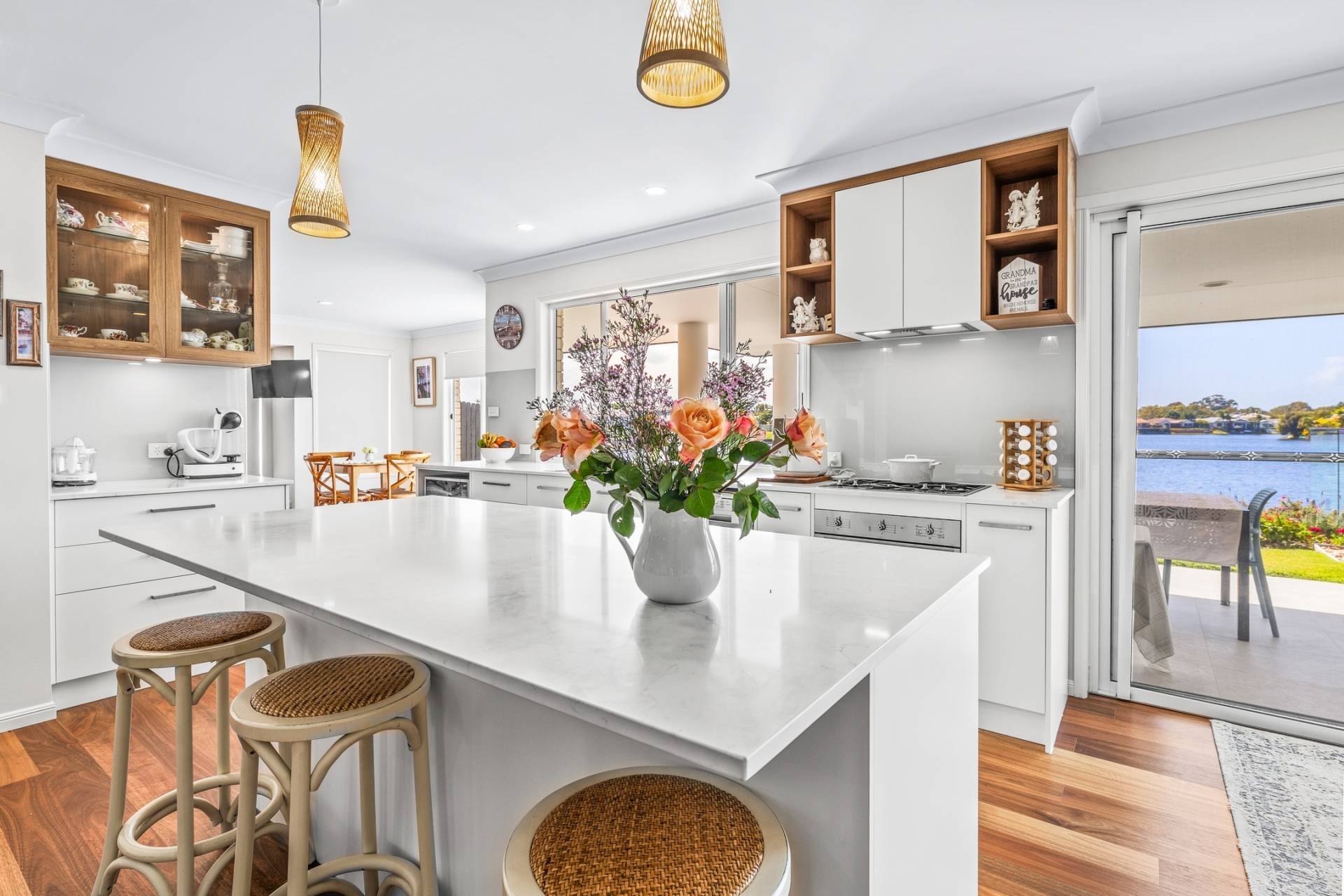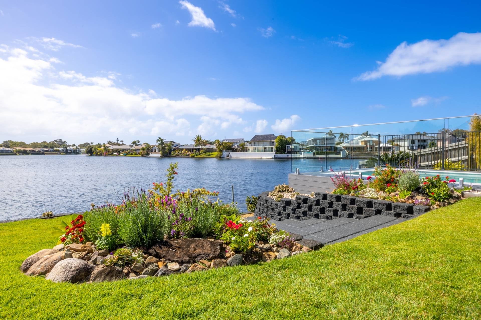 The yard and gardens have been lovingly landscaped to offer both practicality and a picturesque outlook. The pool area is secured with glass fencing to showcase uninterrupted lake views, and the block’s generous size allows for both outdoor entertaining and family play areas.