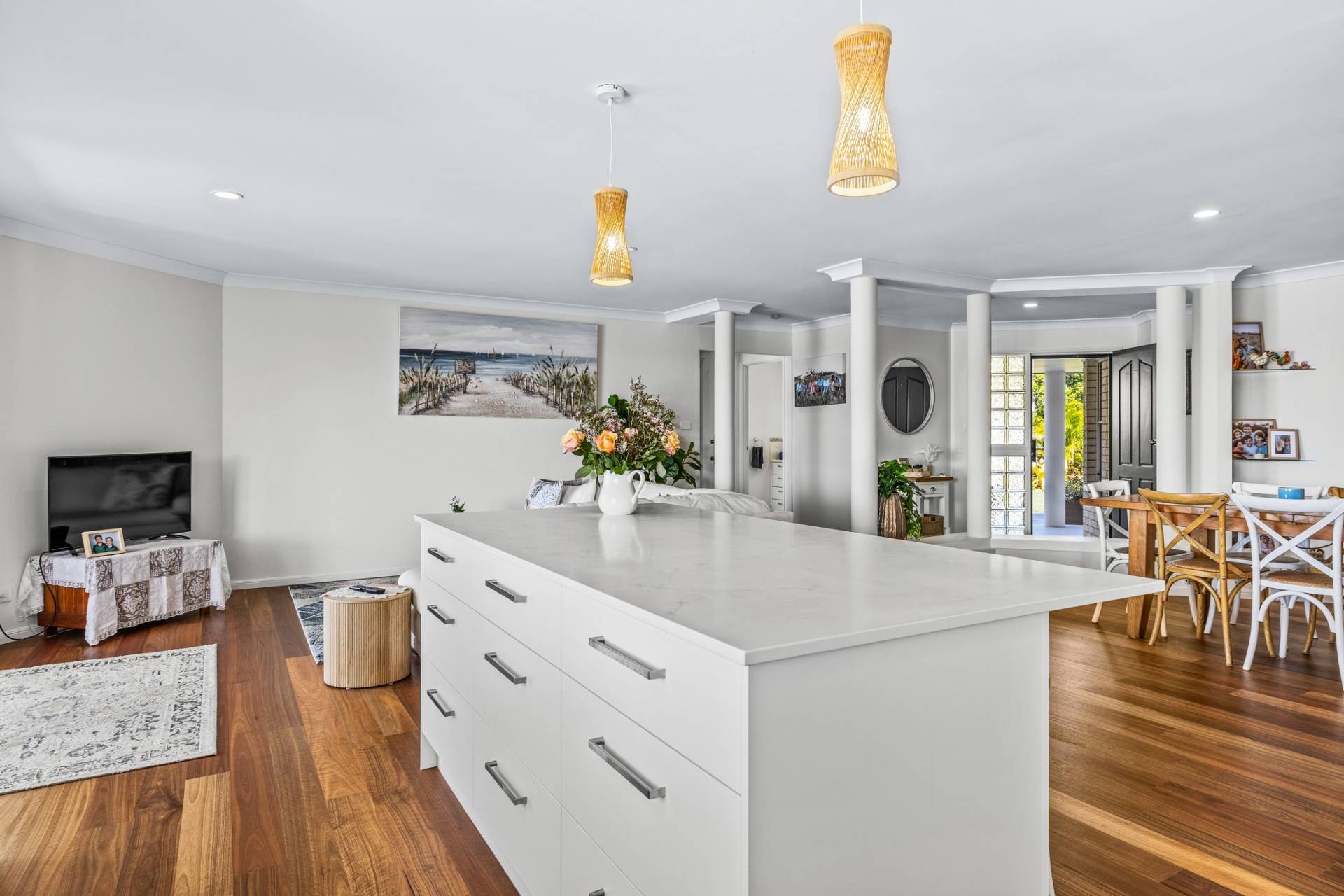 From the moment you step inside, you’ll feel at home. Expansive open-plan living areas are bathed in natural light and grounded by warm engineered timber flooring, creating an inviting atmosphere for both everyday living and entertaining. At the heart of it all, the newly renovated kitchen is a true showpiece — with soft neutral tones, custom cabinetry with ambient lighting, a stone-topped island bench, generous sized walk in pantry, gas cooktop, stainless steel oven, and dishwasher — all designed to bring family and friends together.