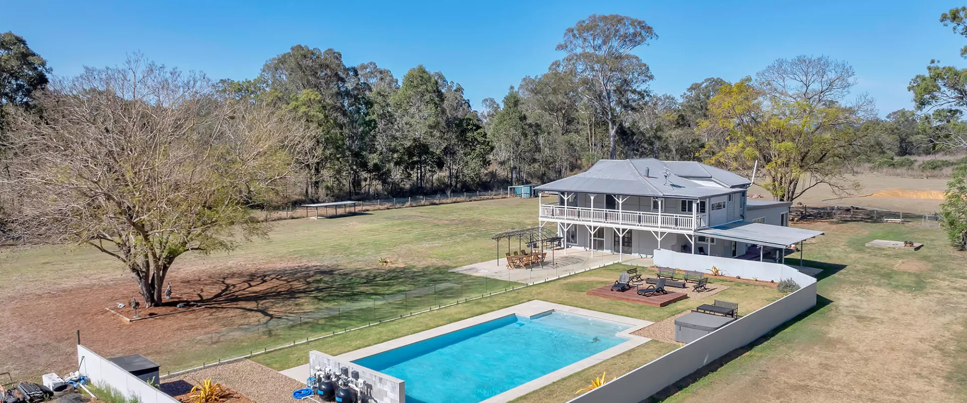 Welcome to 340 Larsens Road, Coominya – a rare opportunity to secure an expansive 15.03-hectare property with a beautifully renovated double-storey Queenslander, a massive pool and spa, and all the space you could ever need for horses, animals, or country living.