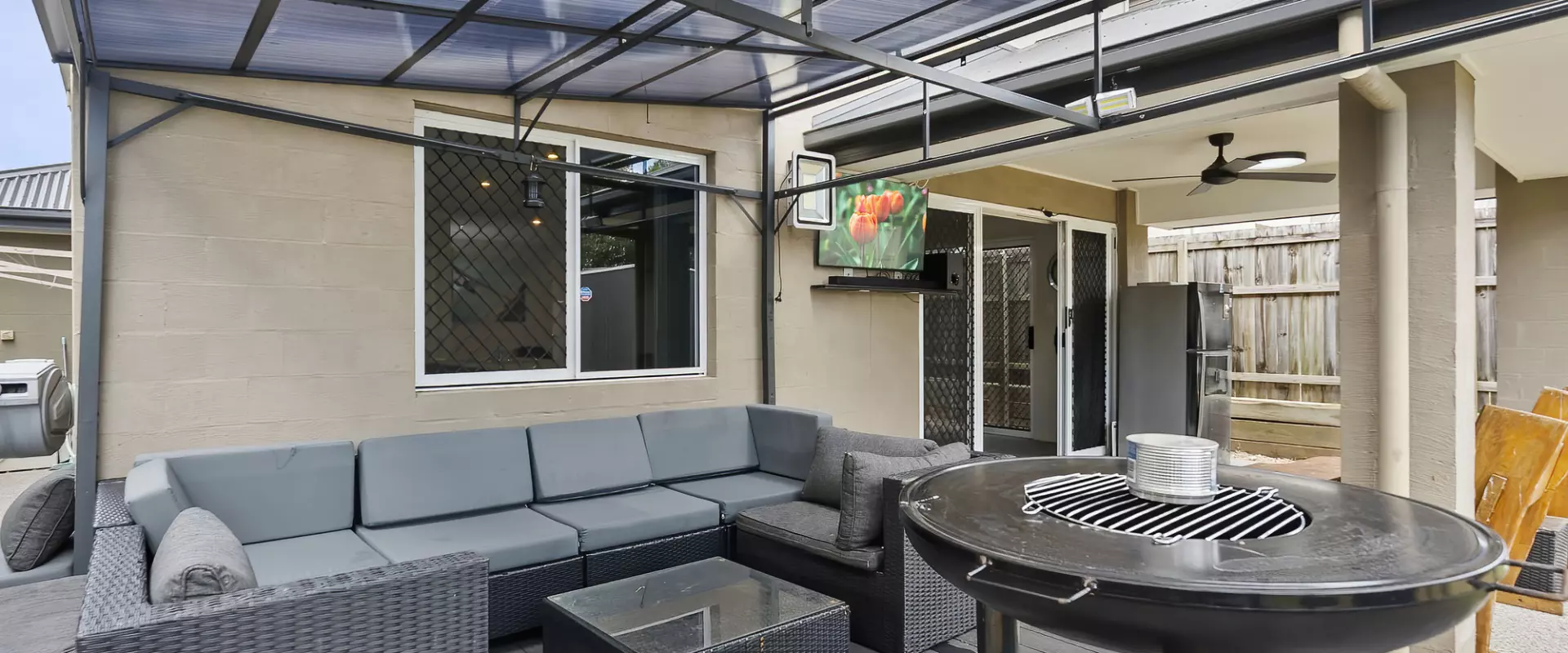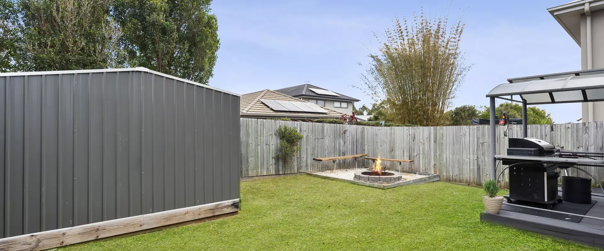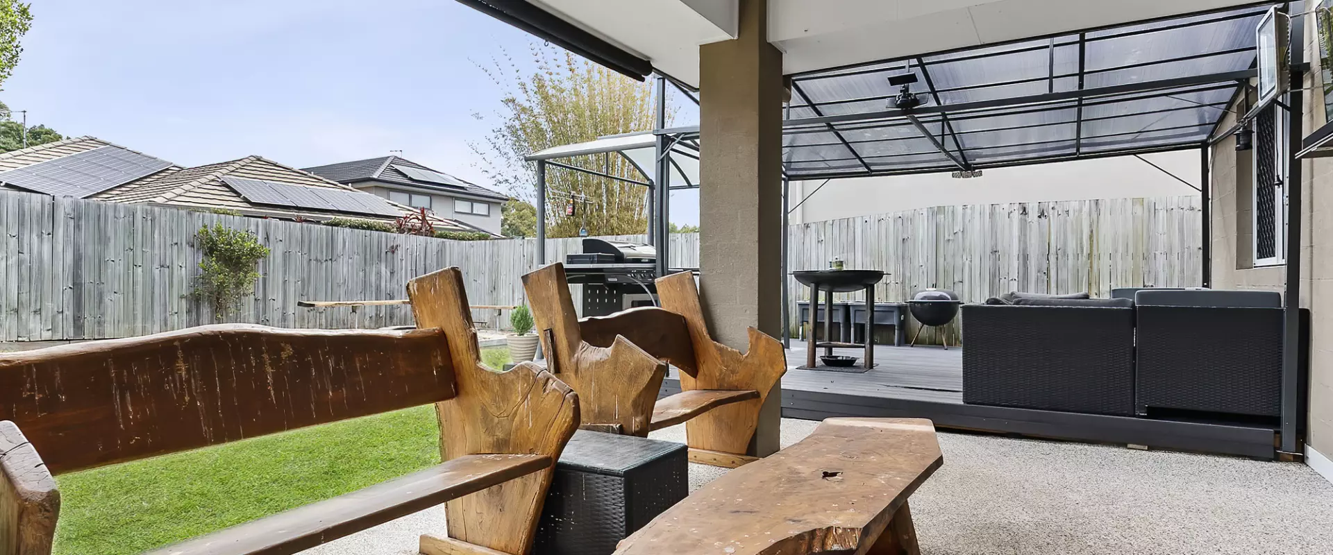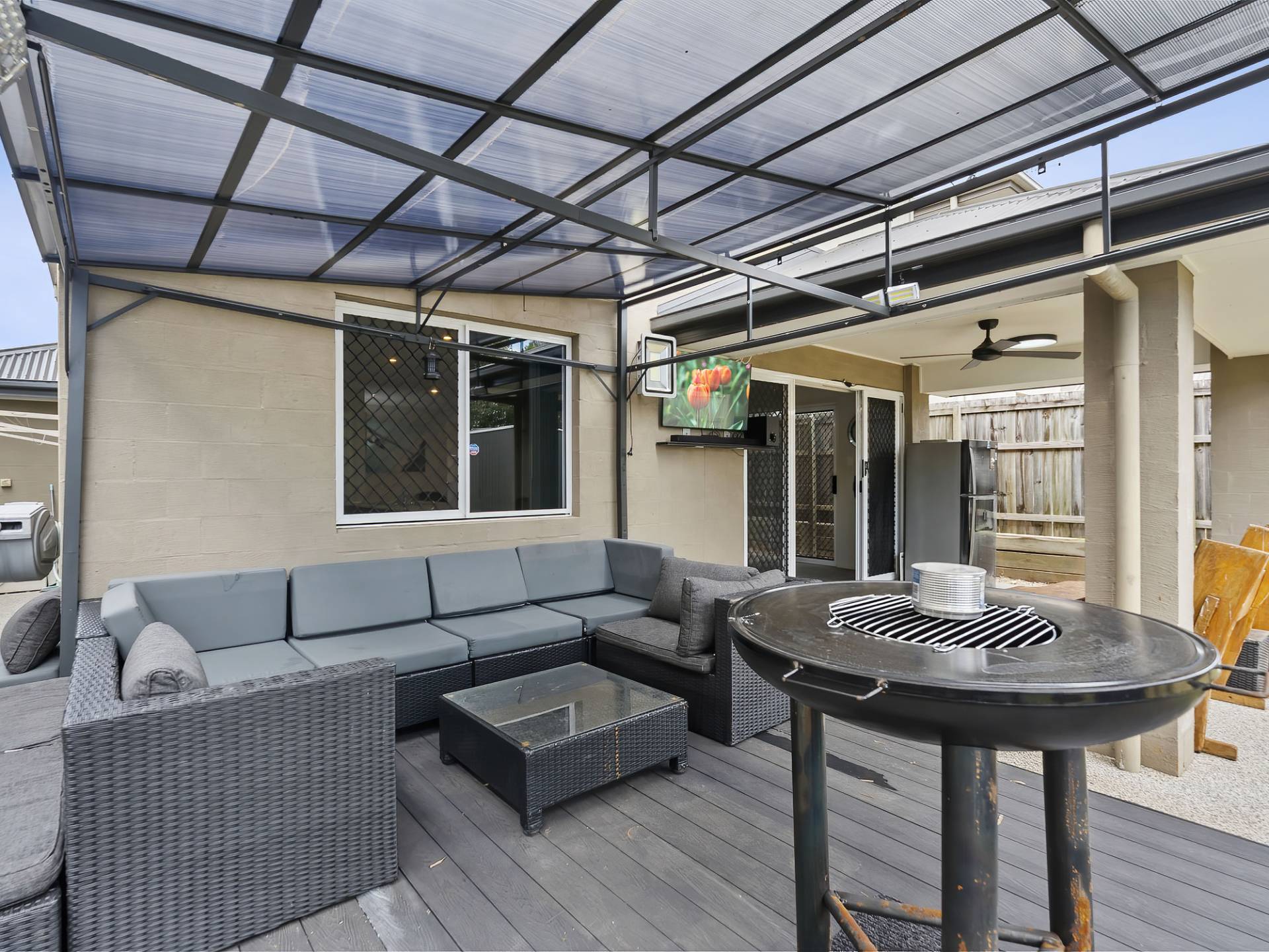 Outdoors, this home truly excels. A large, covered deck creates the perfect space for year-round entertaining, complemented by an adjoining patio with TV fittings for effortless alfresco living. The backyard also features a fire pit area & a storage shed & newly resurfaced outdoor flooring finished in stylish, durable rubber stone.