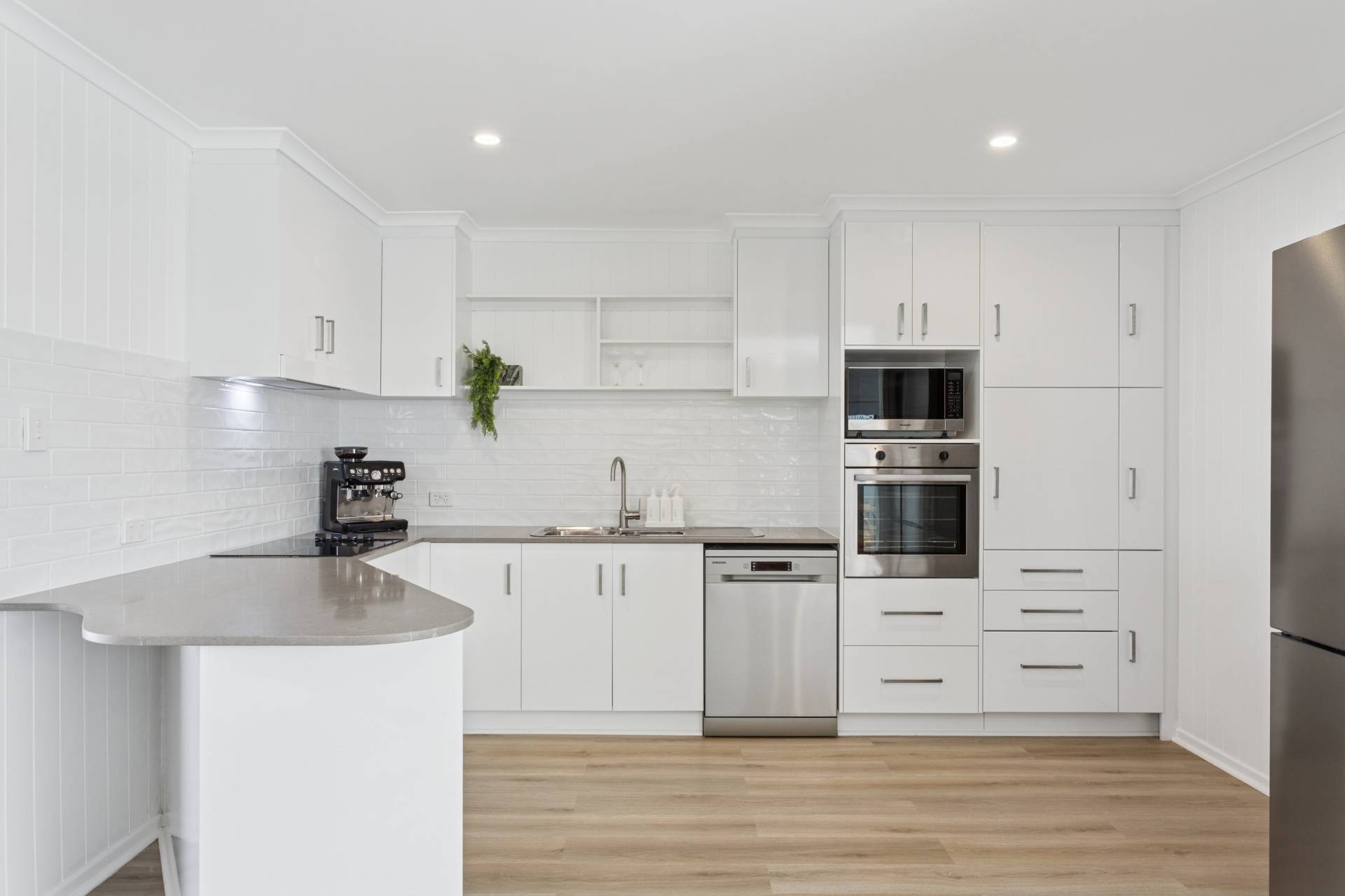 The kitchen is well-equipped with stone benchtops, electric appliances, a dishwasher, and a layout that makes both indoor and outdoor dining a breeze. A separate laundry offers extra space and could easily be converted into a butler’s pantry depending on your needs.