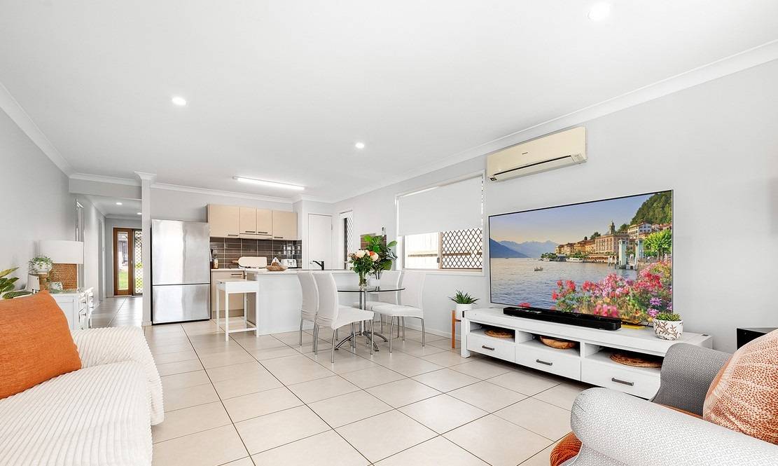 The open-plan kitchen, dining, and living area is light-filled and spacious, with modern finishes and large tiles throughout. Step outside to a stylish undercover patio complete with built-in BBQ—perfect for year-round entertaining.
