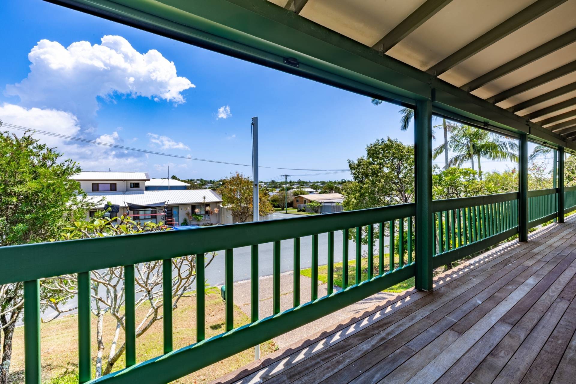 Set on a spacious 698m² elevated corner block, this high-set home captures refreshing sea breezes and boasts wrap-around verandahs that can be accessed from multiple bedrooms and living spaces — ideal for soaking up the sunshine or entertaining outdoors.