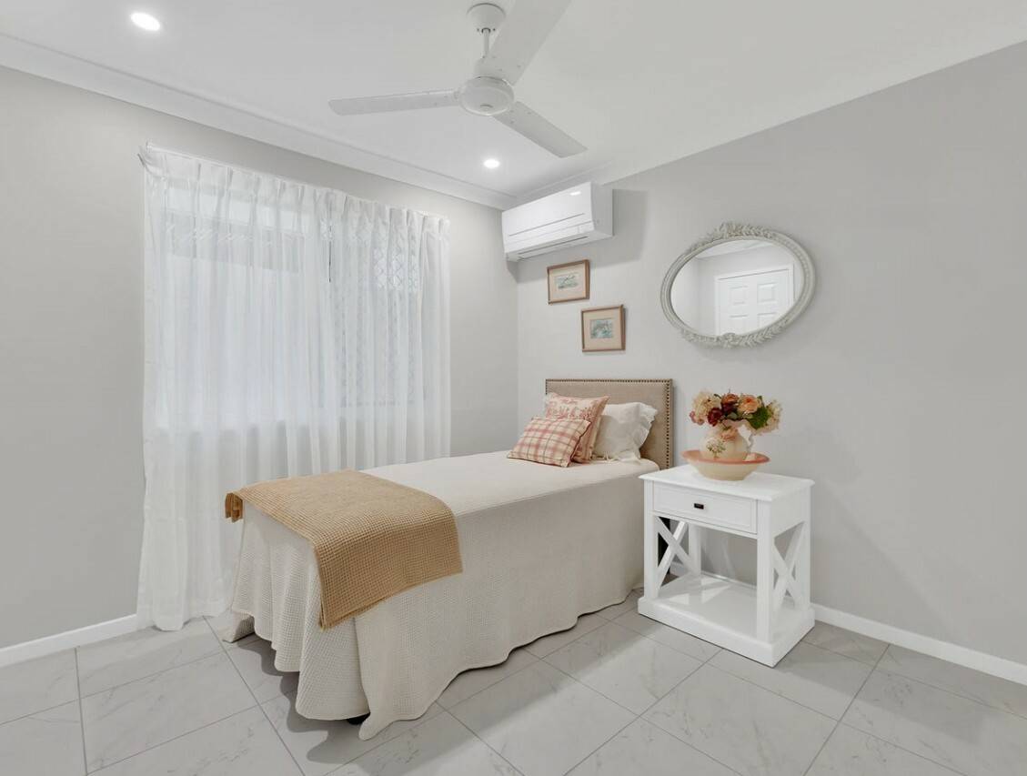 Four spacious bedrooms complete with ceiling fans and mirrored built-in robes, including a master suite with air conditioning for year-round comfort.