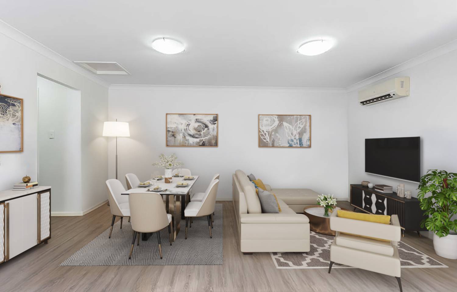 • Spacious open plan living and dining with air conditioning leading out to patio