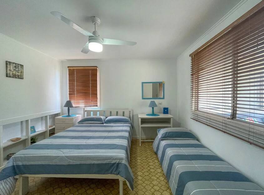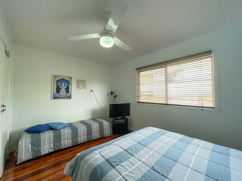 This refurbished elevated home boasts four bedrooms, two bathrooms, offering ample space for the extended family or a group of friends seeking relaxion and comfort with just a short stroll from sandy beaches, shops and boat ramp. Airconditioned comfort, well- appointed kitchen or take the culinary experience outside with the convenient gas BBQ. Scott's Retreat is pet friendly, so they can enjoy the holiday too.