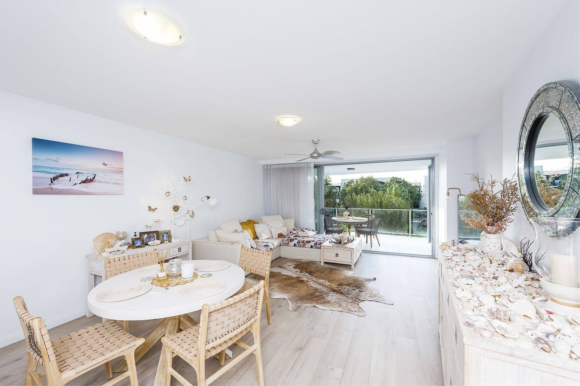 Positioned in one of the best spots within the sought-after 'Island Quays' complex, this meticulously updated apartment offers an idyllic lifestyle with breathtaking leafy parkland vistas and stunning water views. Perfectly designed for effortless living, the light-filled open-plan living and dining area flows seamlessly through floor-to-ceiling stacker doors onto an expansive entertainer's terrace.