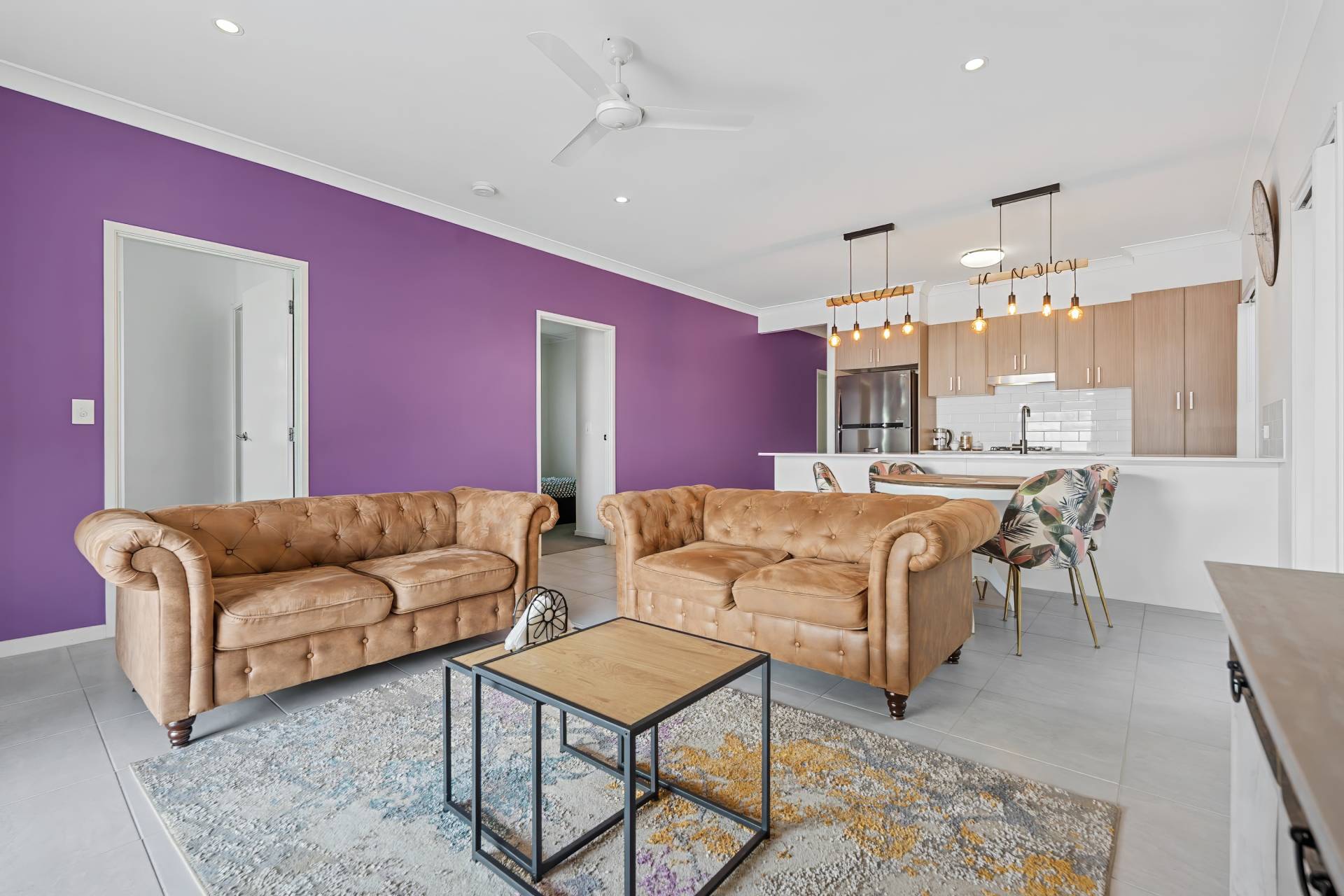 The home consists of security screens, tinted windows, a separate toilet, main bathroom, and 3 other large bedrooms, along with ceiling fans throughout for comfort on those warm summer days. The home is air conditioned to the main open plan living area and boasts not only a generous living room, but an additional separate formal lounge allowing space for anyone with children. The home has high ceilings throughout which helps make the home feel more spacious.