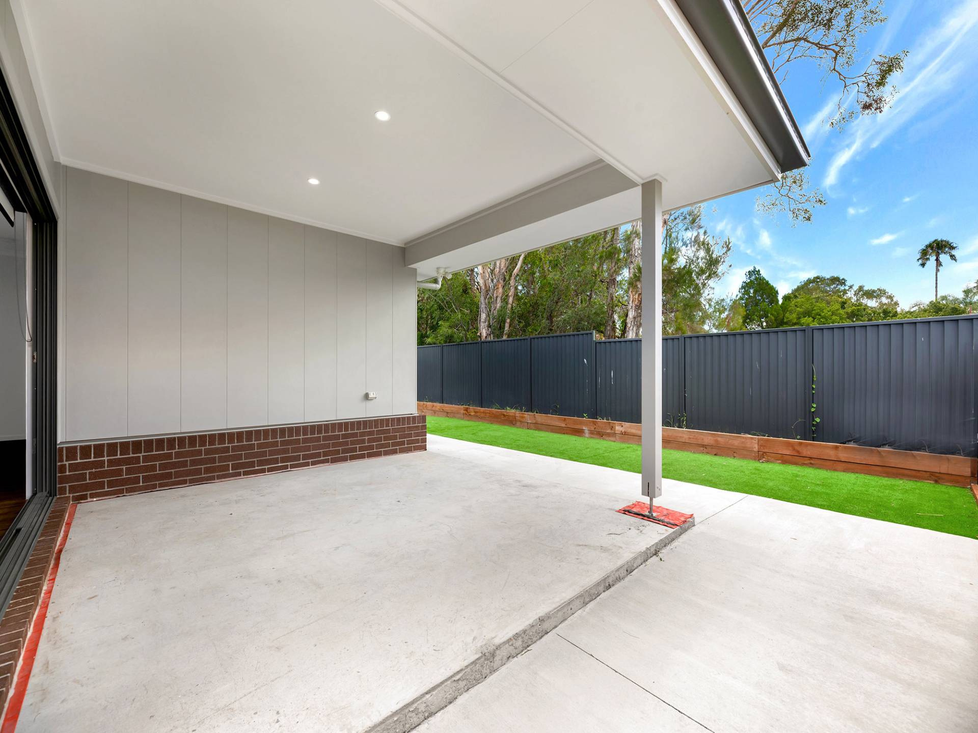 • Low-maintenance backyard with artificial turf