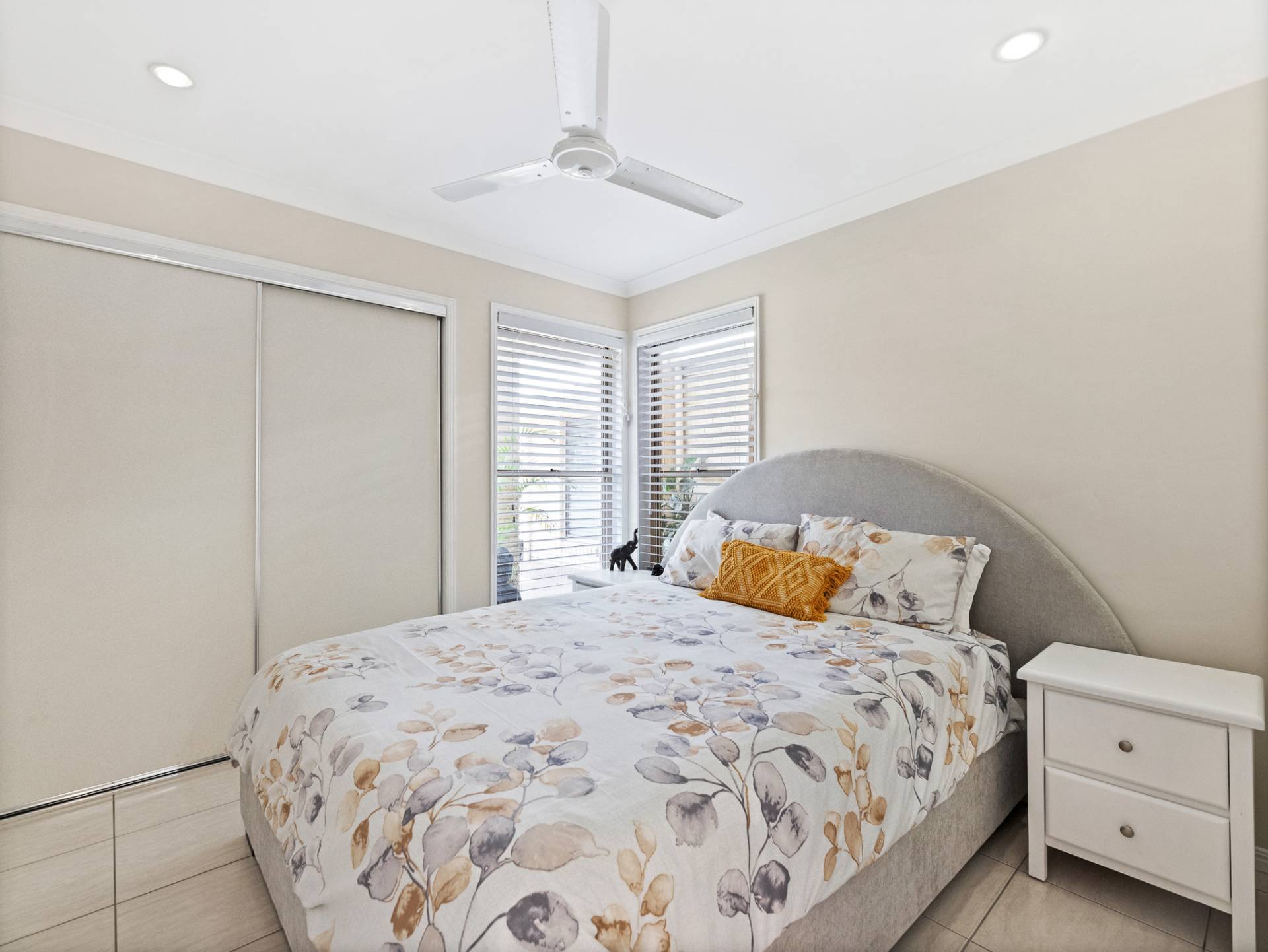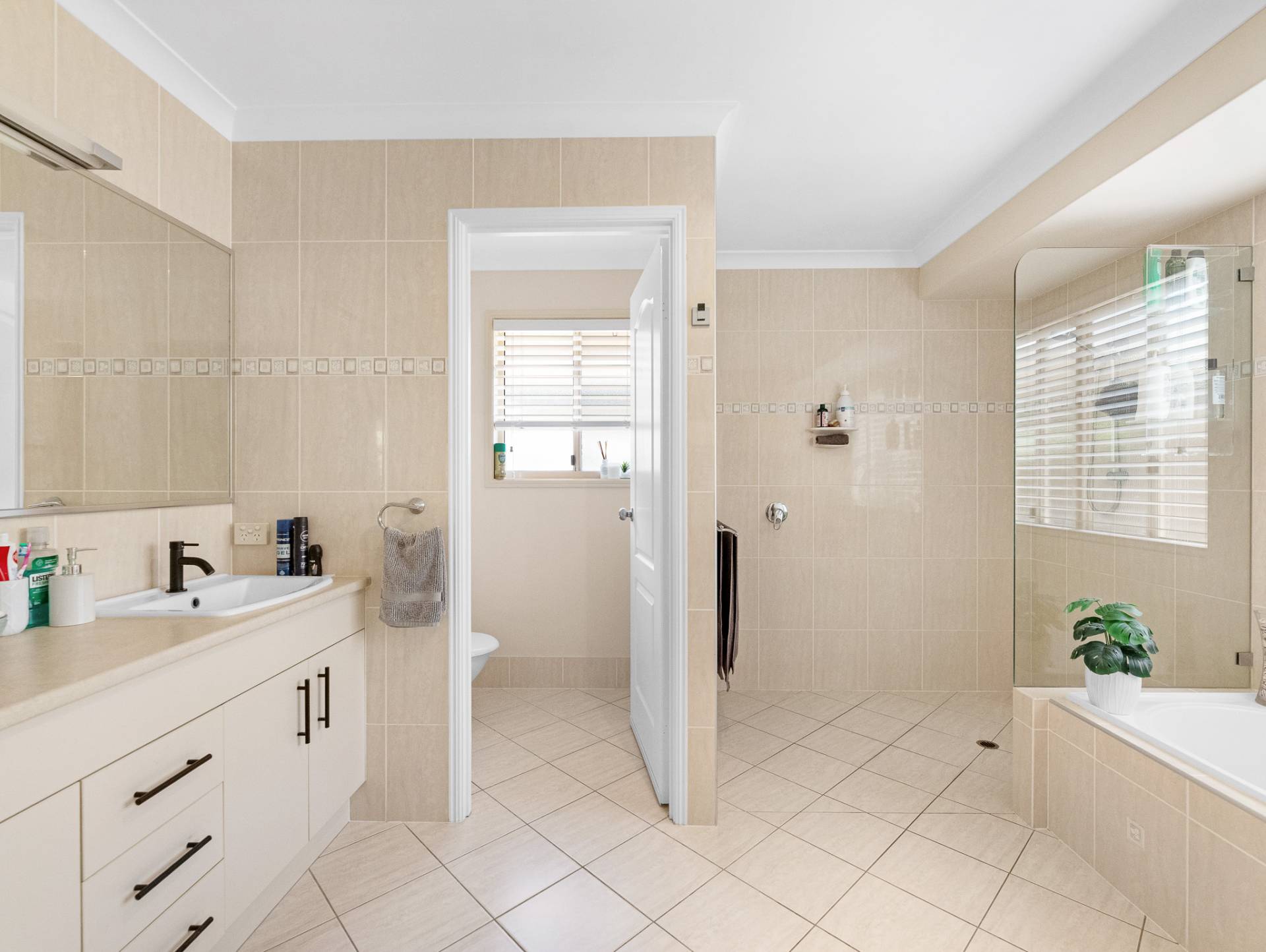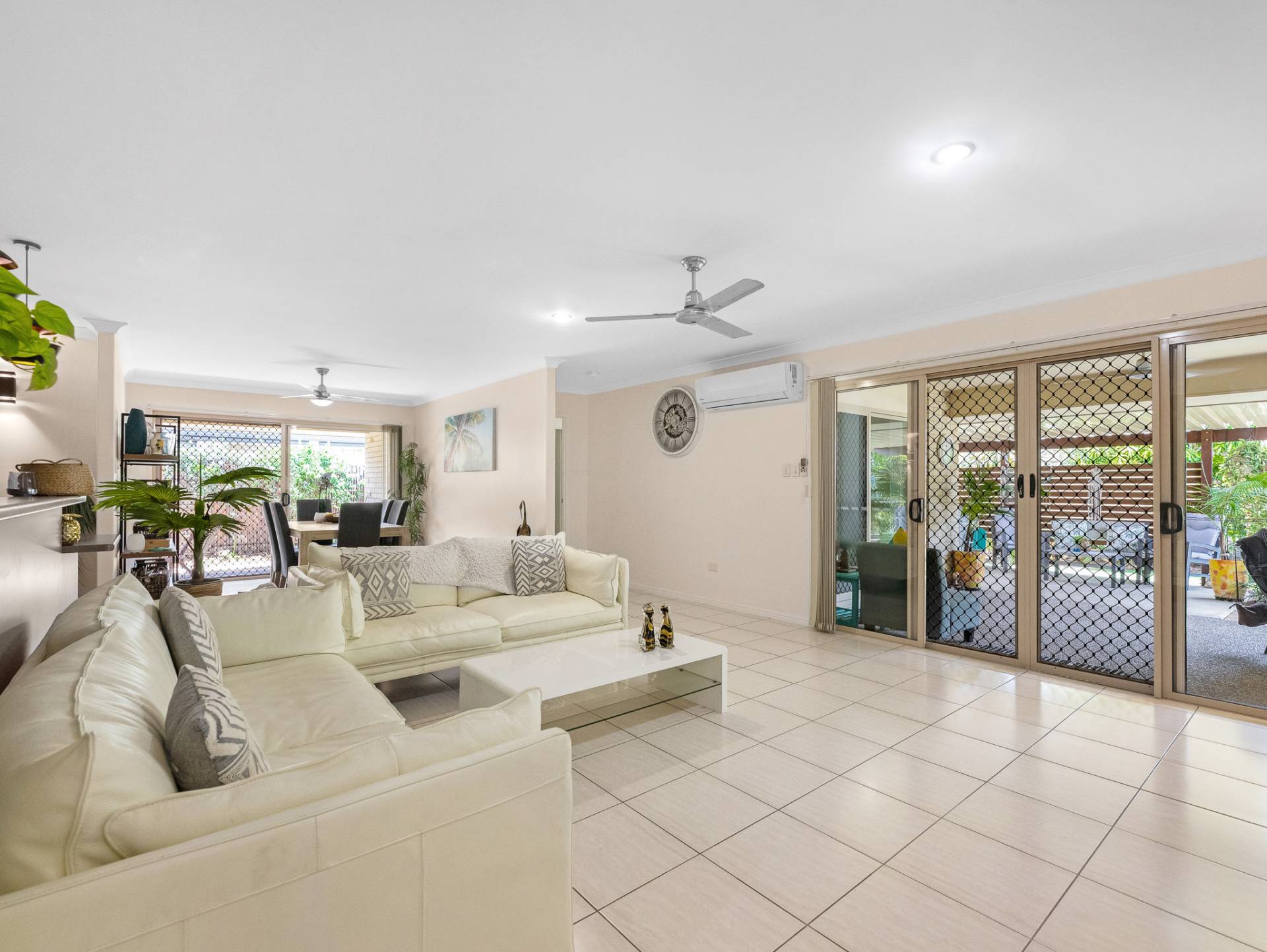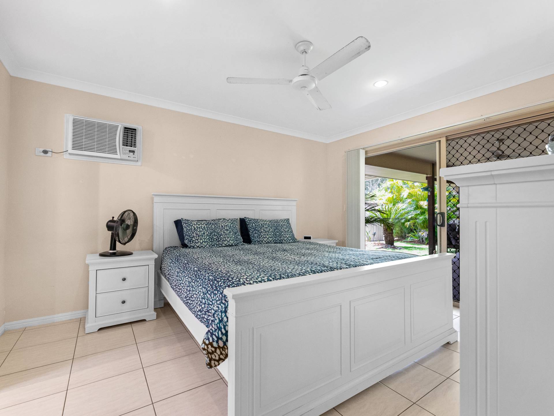 The air-conditioned master suite, with its walk in robe with twin sinks, ceiling fan, ensuite and direct access through sliding door to the picturesque outdoor gardens, will be your go to for peace and quite at the end of a long day.