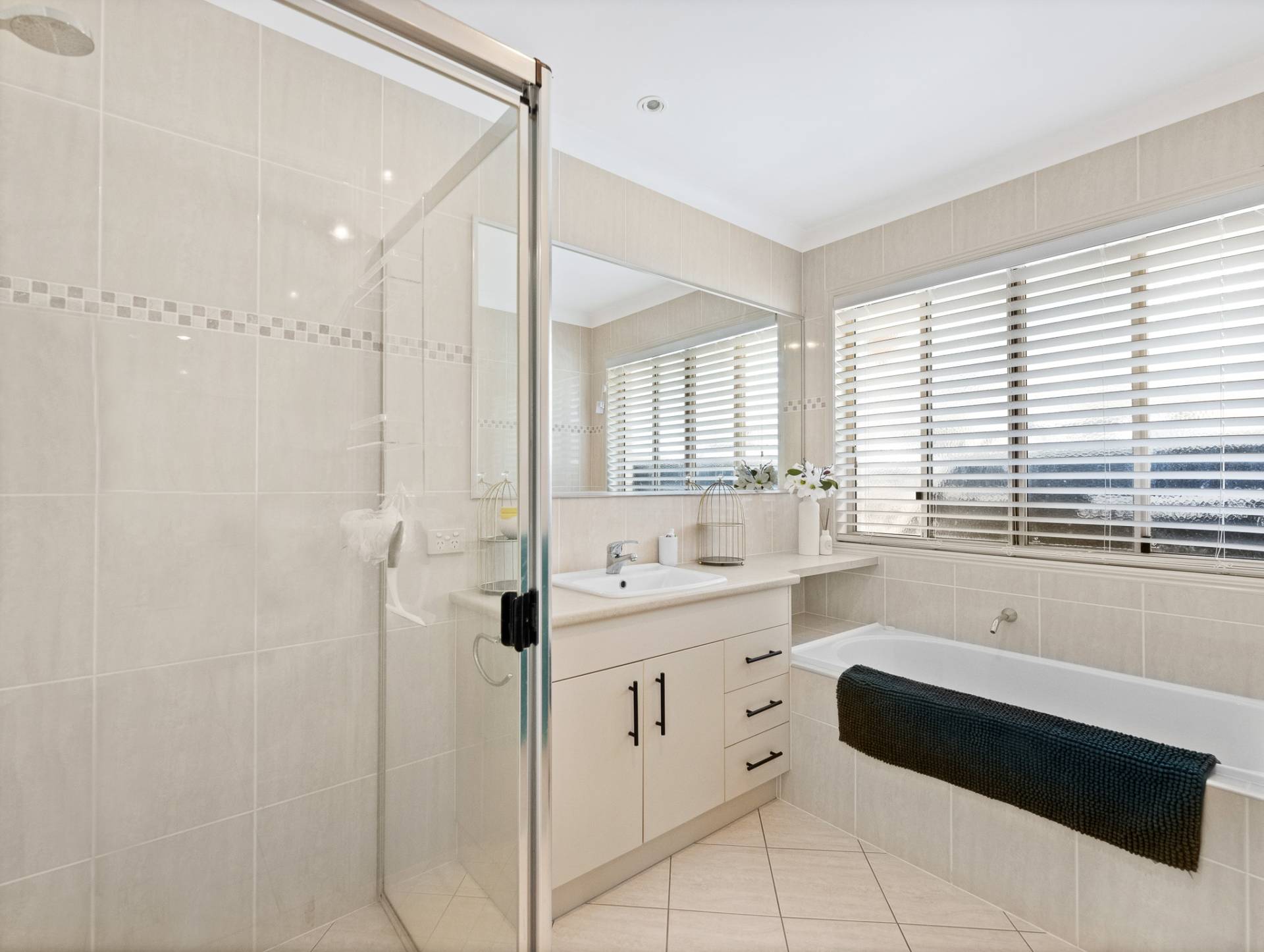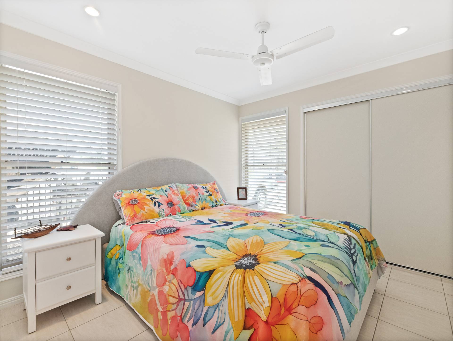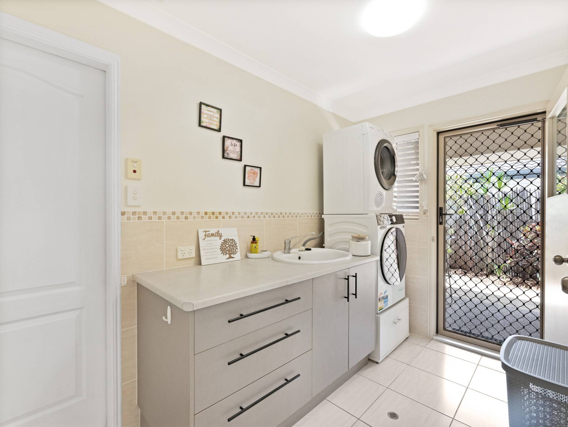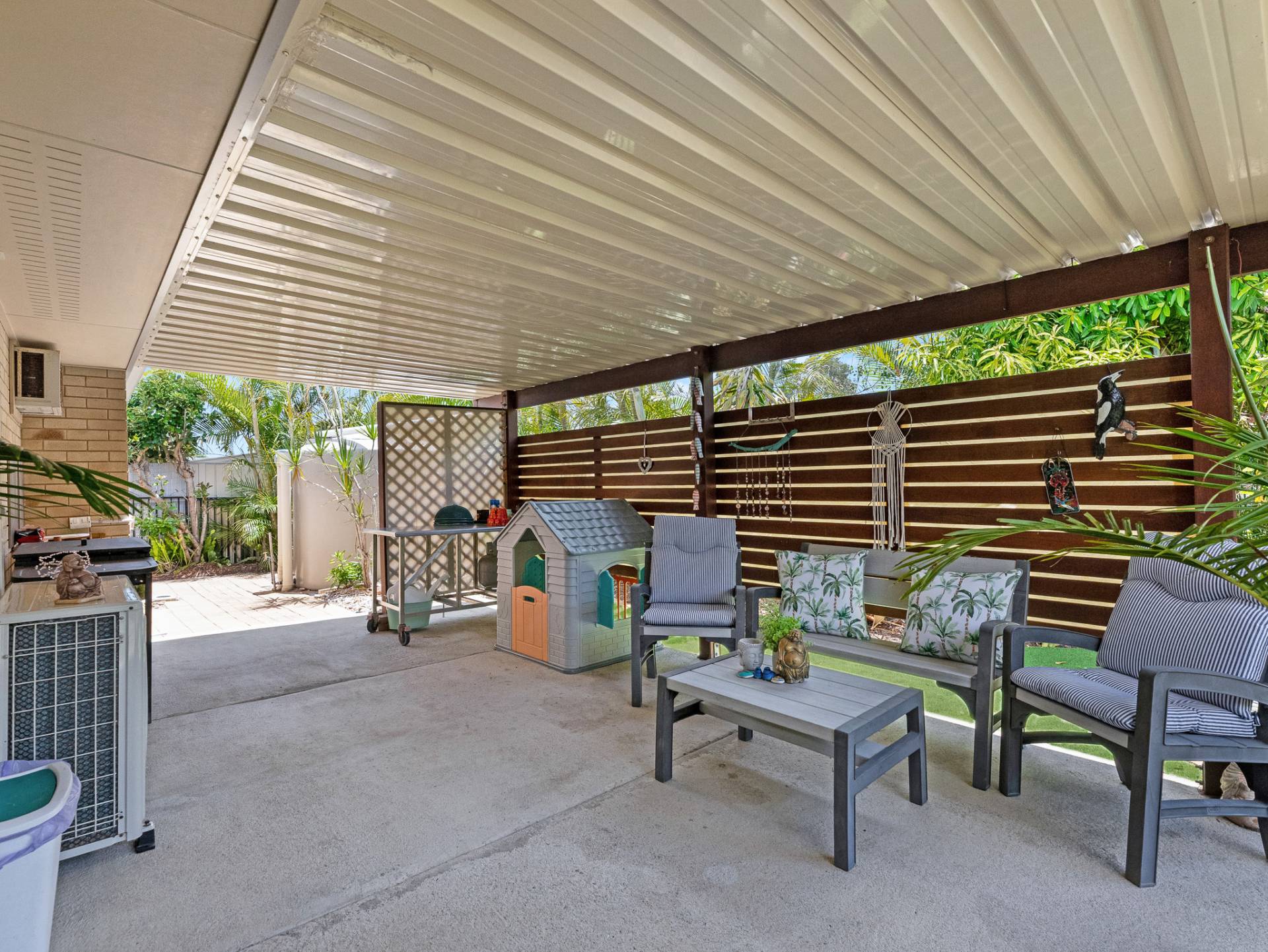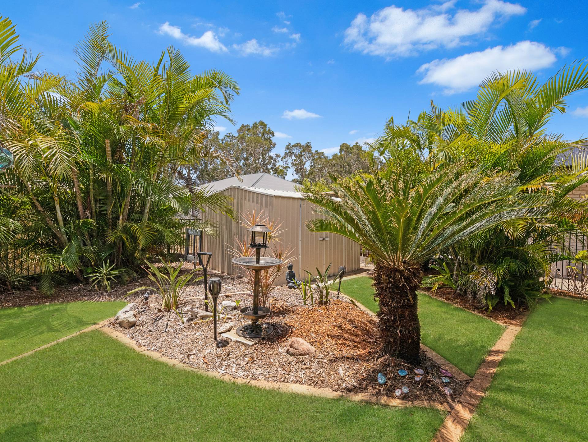 The air-conditioned master suite, with its walk in robe with twin sinks, ceiling fan, ensuite and direct access through sliding door to the picturesque outdoor gardens, will be your go to for peace and quite at the end of a long day.