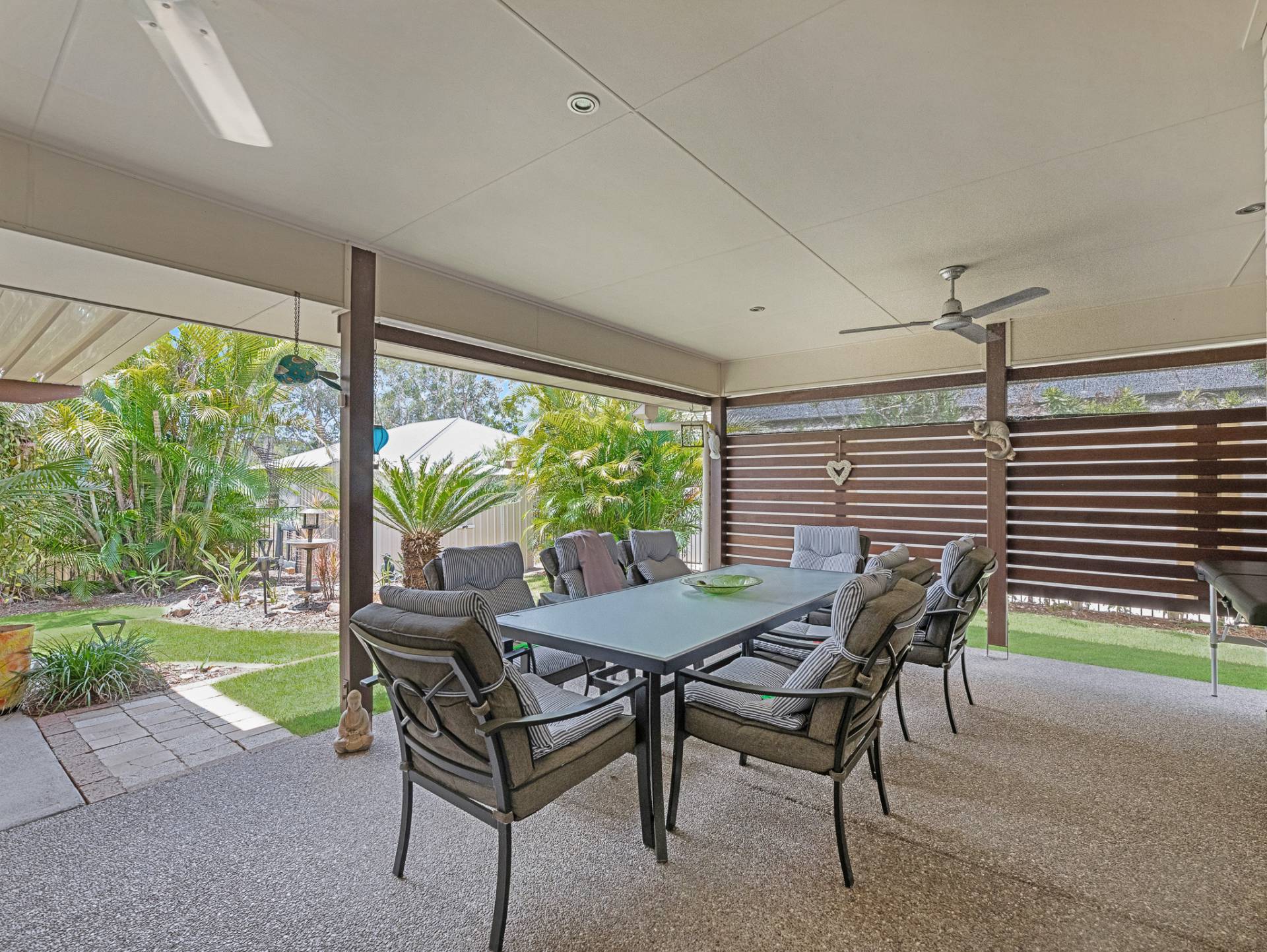 Outside, the large undercover entertaining area overlooking the tranquil gardens offers the perfect setting for year-round outdoor living.