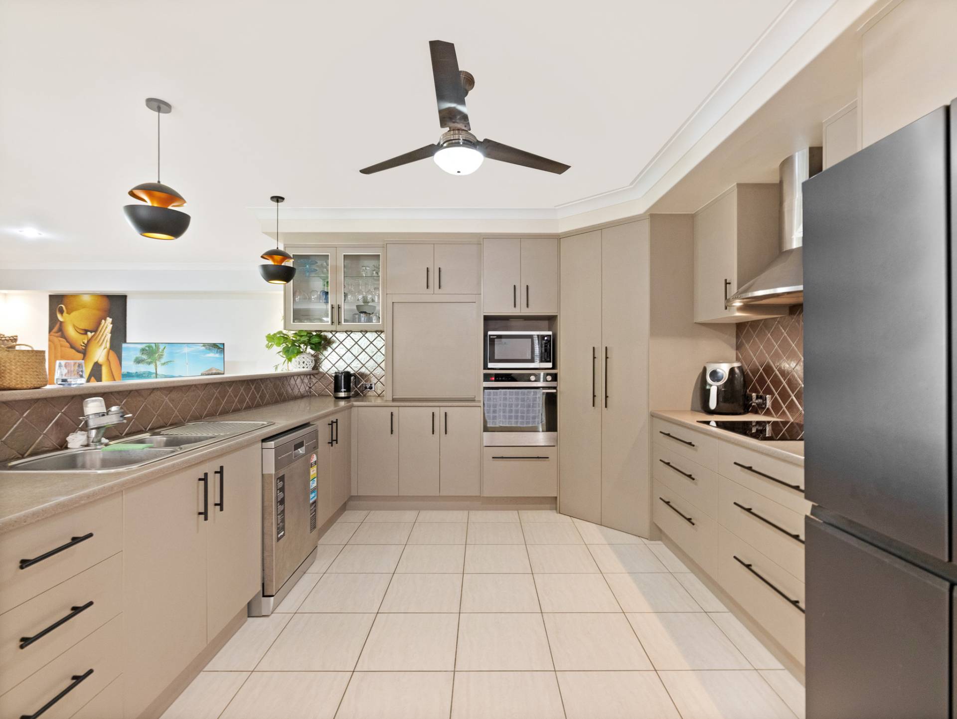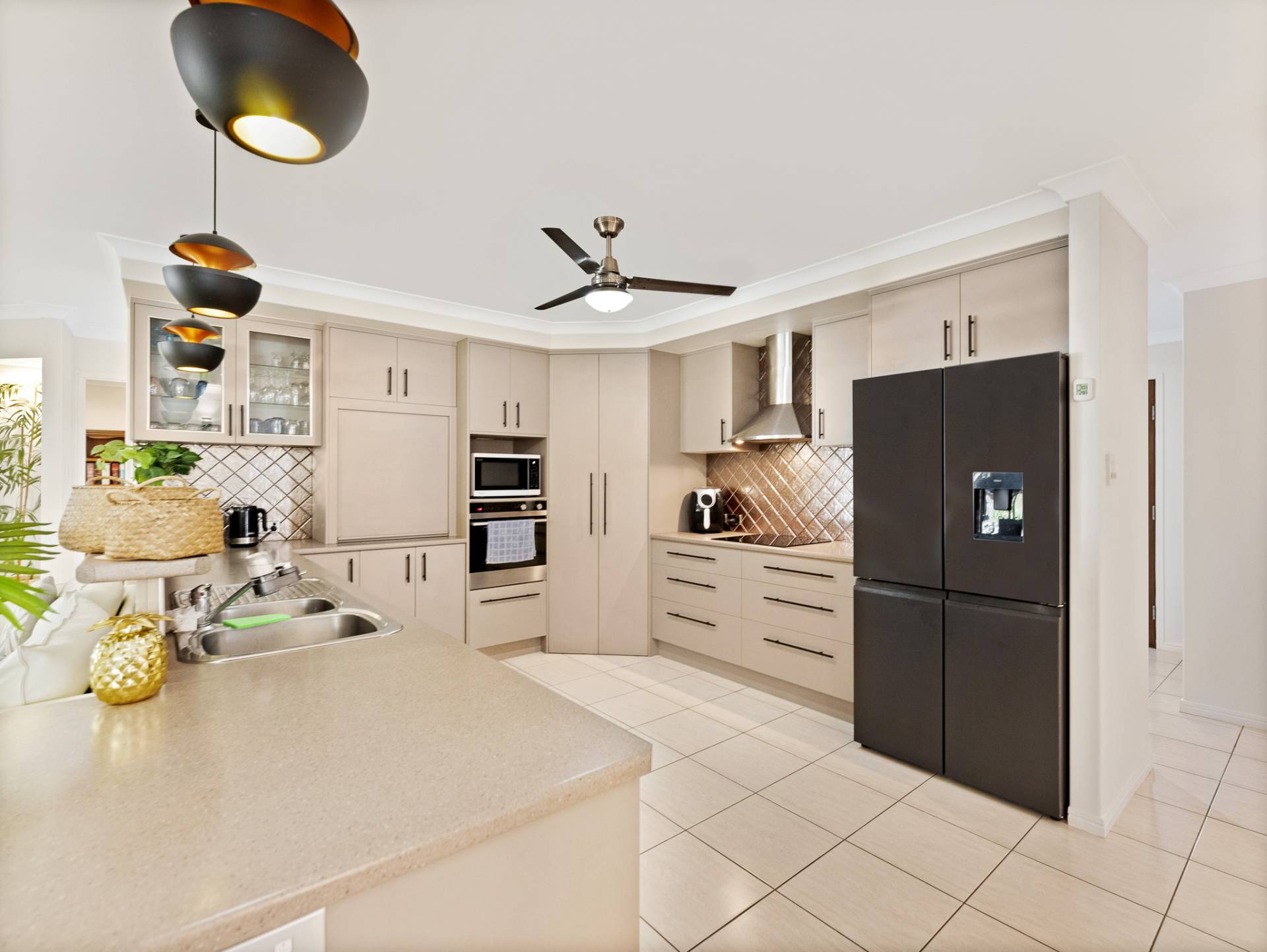 Showcase your culinary skills in the spacious, air-conditioned kitchen. Blending functionality and design it is truly the heart of the home. Offering plenty of storage and preparation space, walk in pantry, electric cooktop, dishwasher and overlooking the open plan living/dining area, even the most discerning home chef is bound to be impressed.