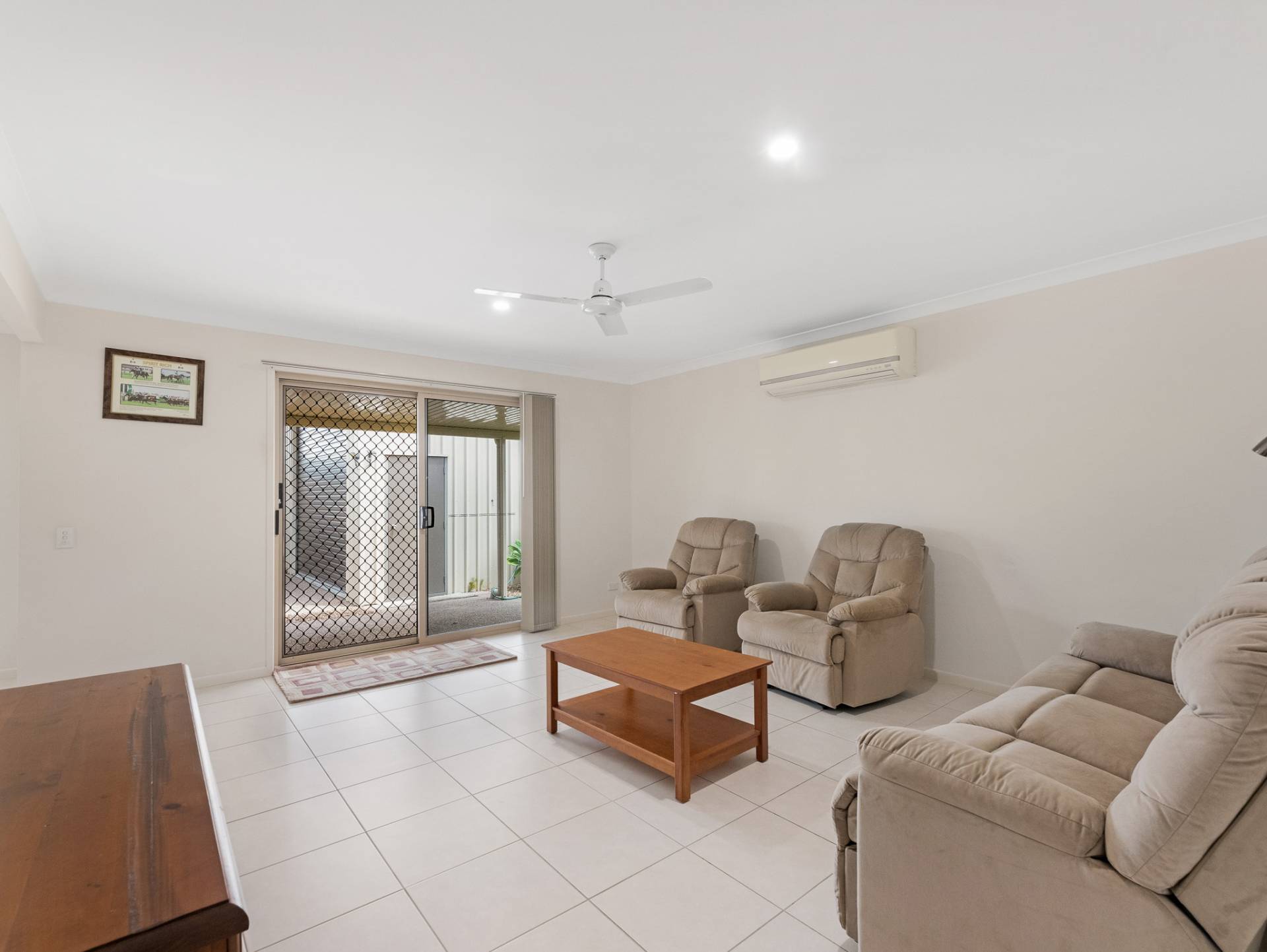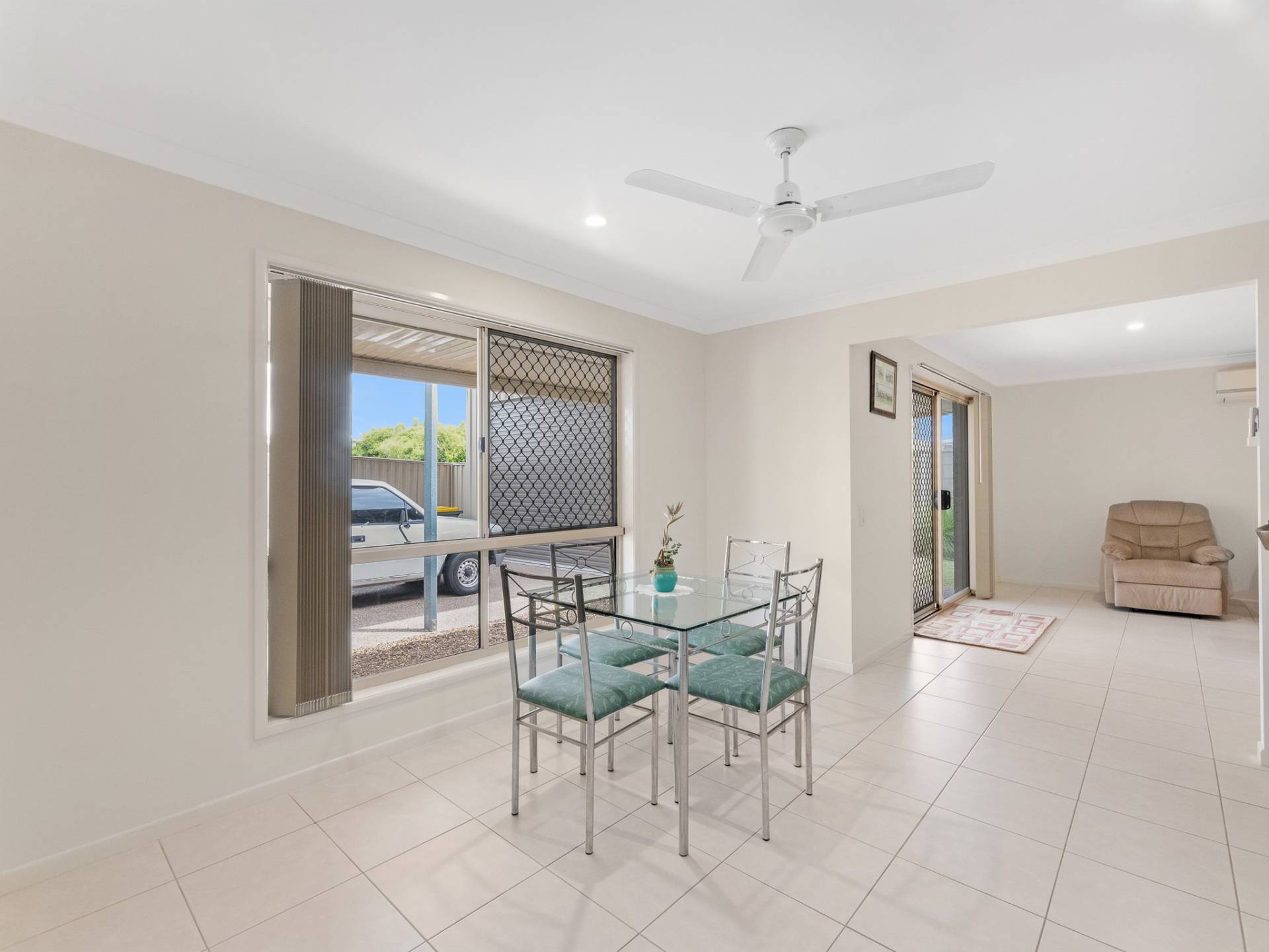 The home provides a choice of four well-sized bedrooms, including an air-conditioned master suite with ceiling fan, walk-in robe and ensuite bathroom. The guest bedrooms come with built-in robes and ceiling fans, ensuring comfort and functionality flow throughout this well-designed abode.