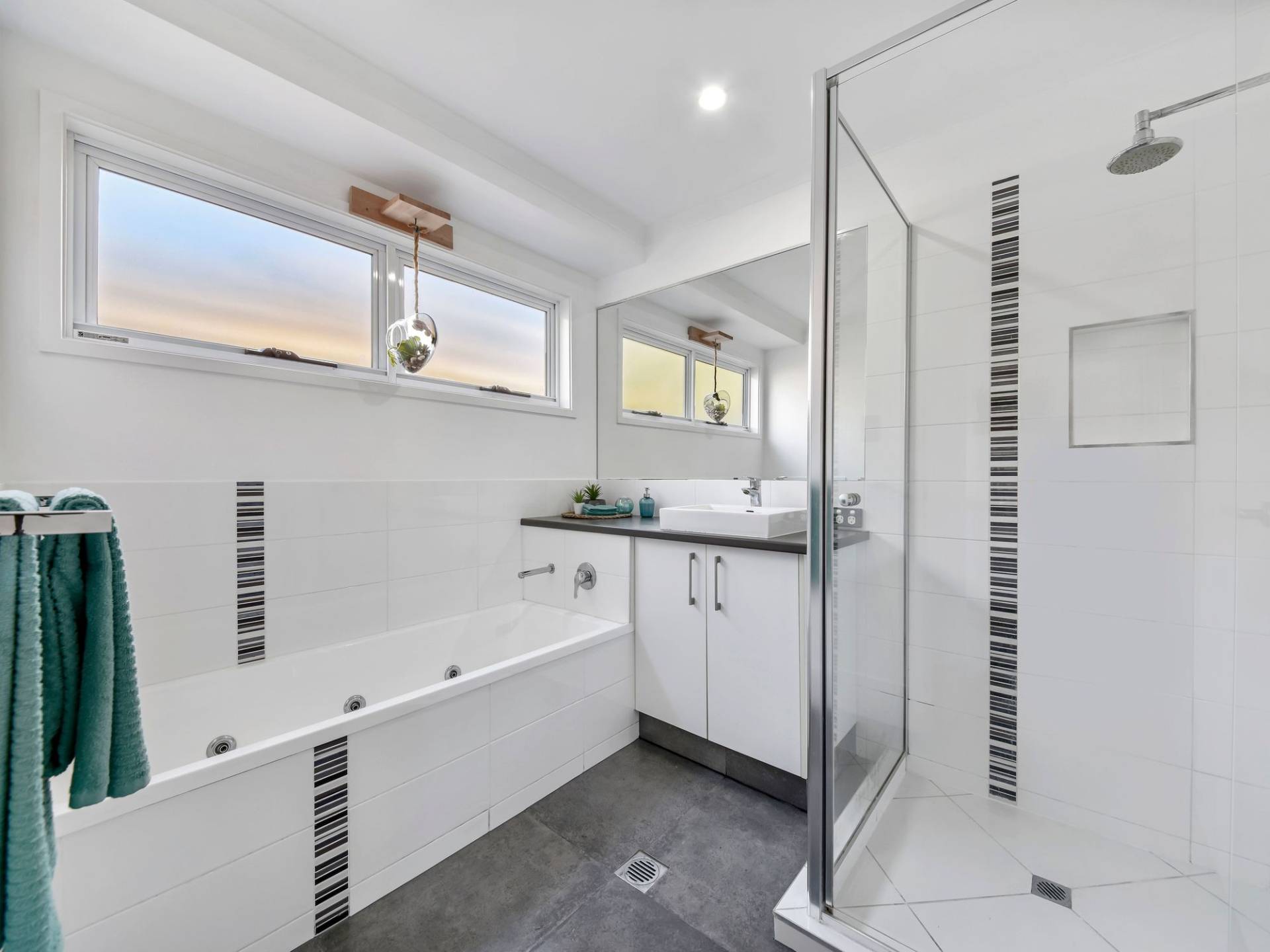 Privacy + space in abundance are two key themes throughout the home, beginning in the backyard. Stacker doors open up to the tiled alfresco area which extends out on to the deck, perfect for entertaining. The rest of the yard is flat and functional with room for pets and children to play.