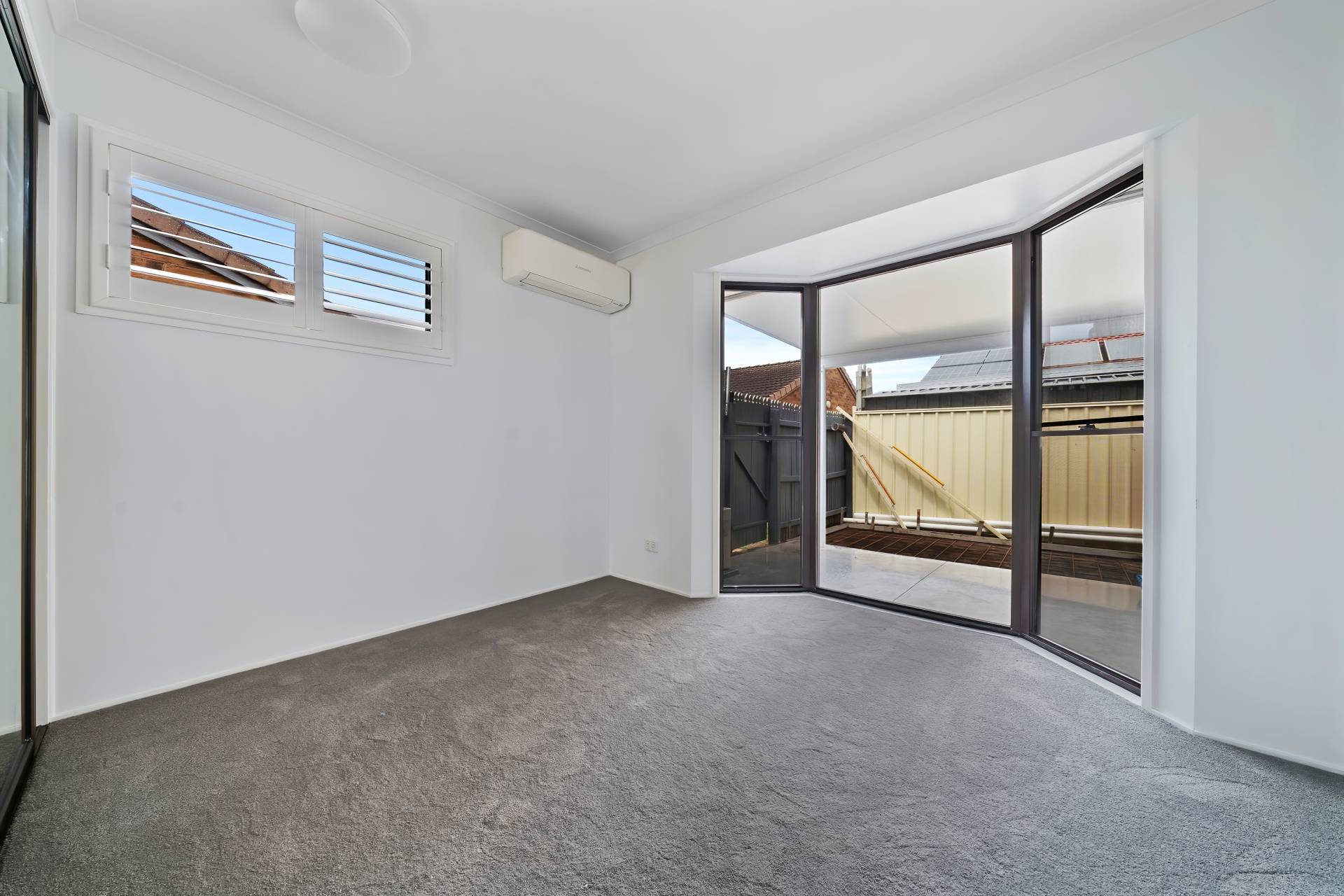 The home features two generous bedrooms, both complete with built-in robes, bay windows, and plantation shutters, while a versatile third space offers flexibility as a multipurpose room, home office, or even a third bedroom.
