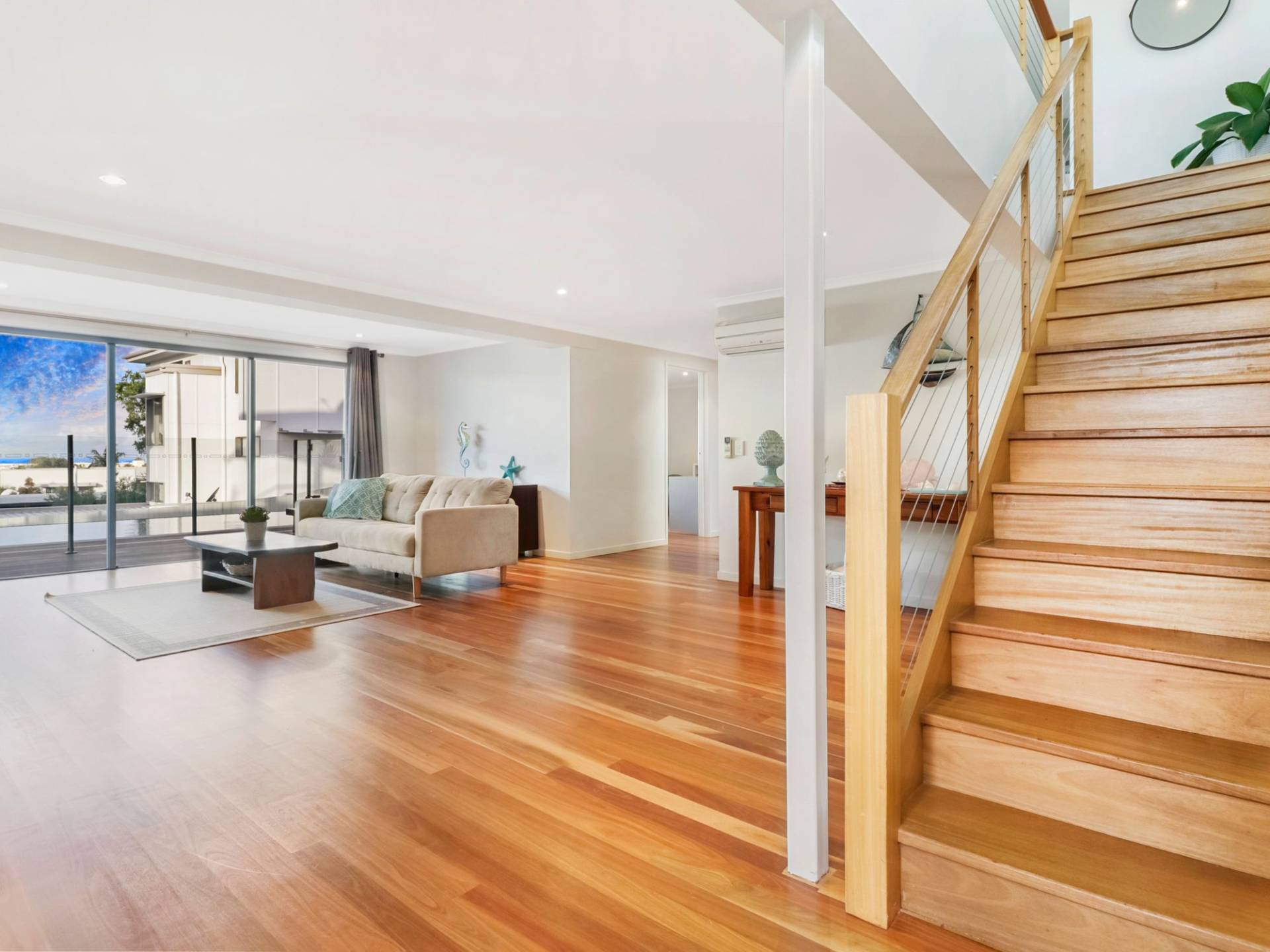 - Rich, warm timber floors on both levels are indicative of the comfortable high end finishes