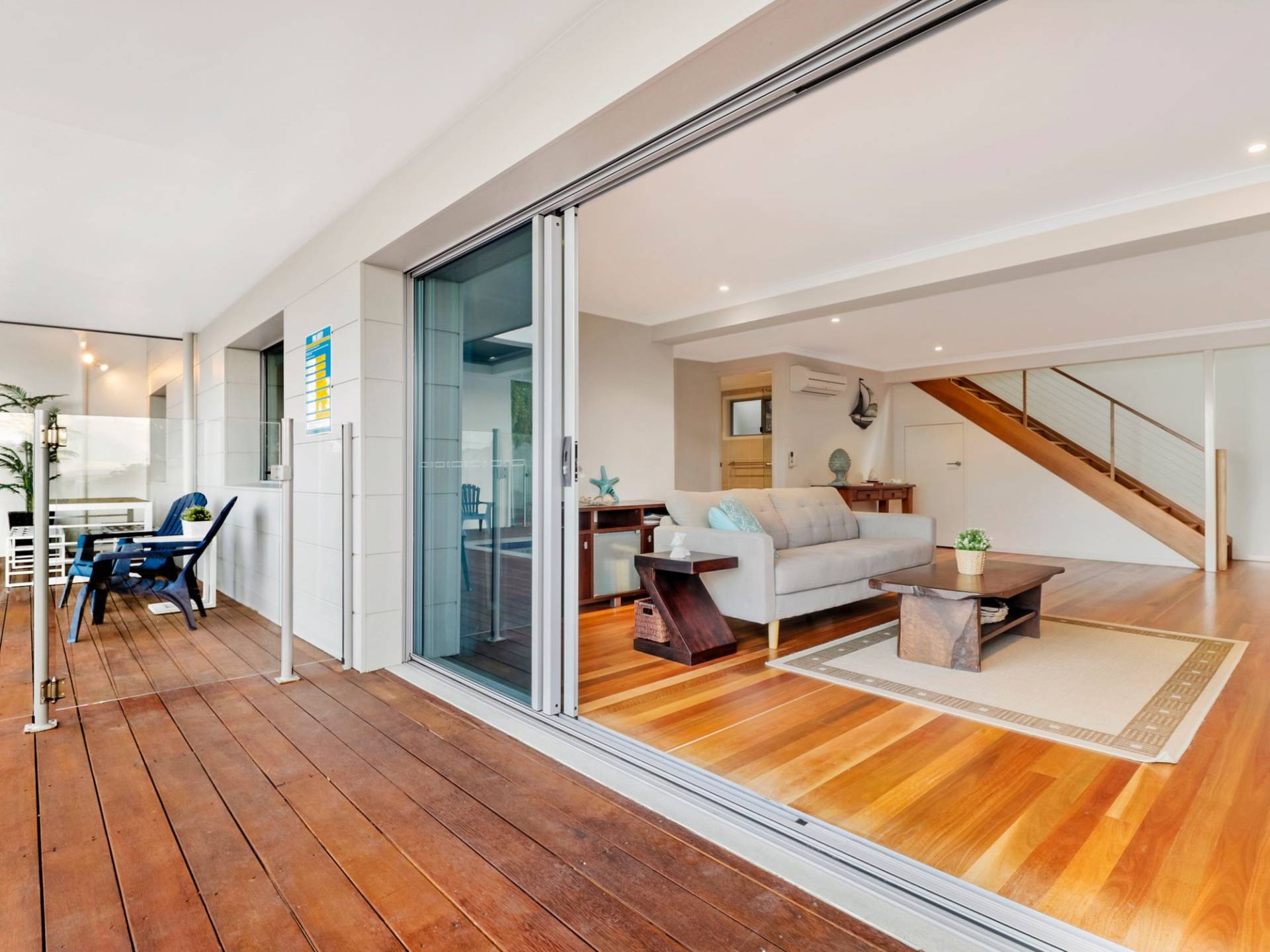 - Spacious upper level family living opens up onto enormous 45m2 outdoor undercover entertaining deck