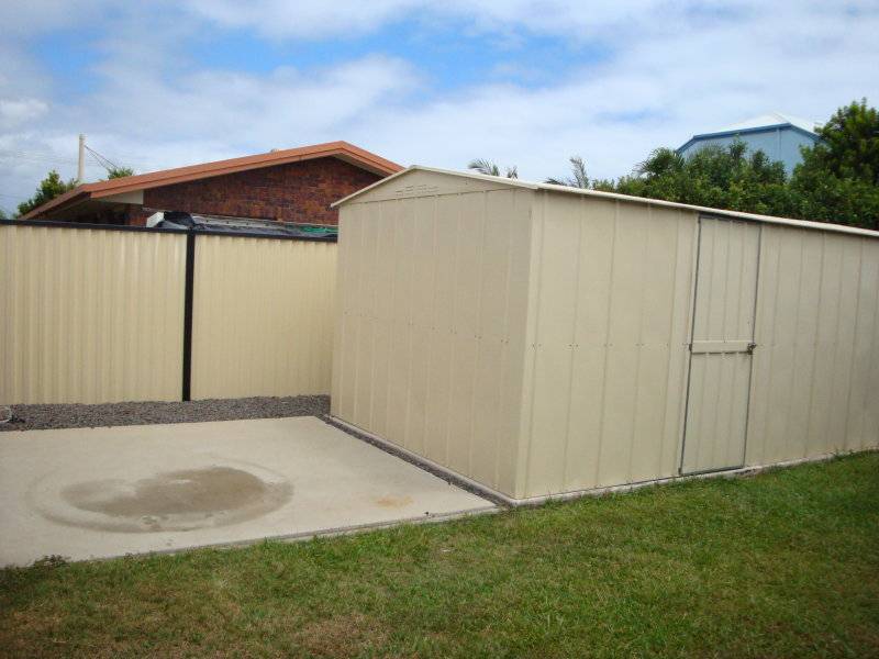 The backyard is of low maintenance design with established plants and gardens, there’s a double sized garden shed for the garden tools and concrete slab at the side for storage, plenty of room for the in-ground pool.