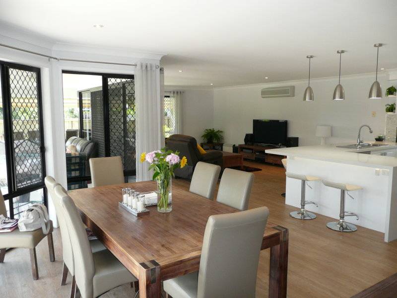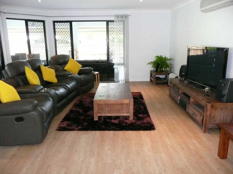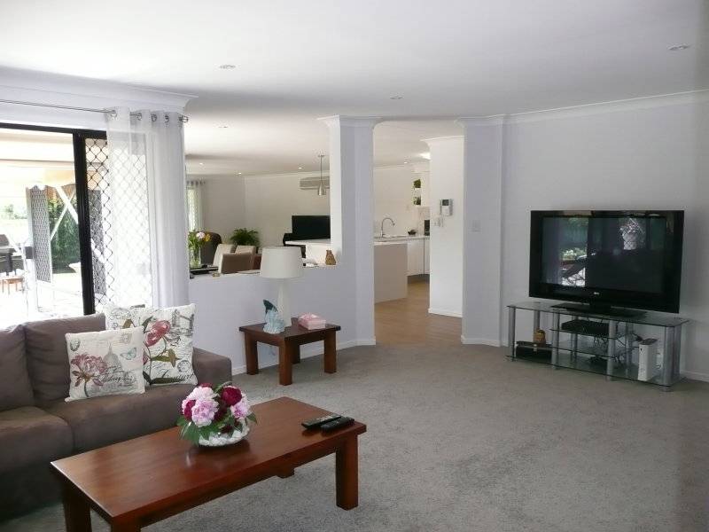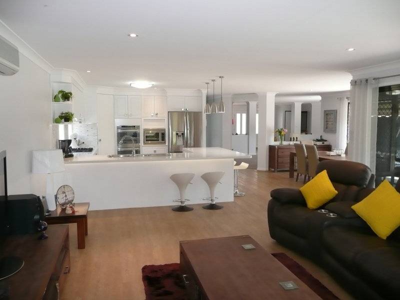 When the current owners purchased this 10 year old home in early 2014, they knew they had finally secured their dream home in the perfect location. With an irreplaceable 954m2 allotment which is fully landscaped and fenced to provide total seclusion and privacy, the owners went about renovating the purpose built designer home. The result is amazing. It is like flicking through the highlights real on a room by room tour of the TV program “The Block”. Modern timber floors have added charm, expensive floor coverings have added quality, new cabinetry in all wet areas has added storage space and an abundance of stone in the brand new kitchen takes on the lead roll in a star studded act of “WOW factor”. The sensible and thoughtful layout provides a generous separation of master accommodation from 3 other separate bedrooms. There is a study nook for further separation from the clutter of computer cords, and the 3 separate living zones provide formal living and media living opportunities. This level set home was originally designed and built by a very clever person who had a vision to achieve a low maintenance yet vibrant lifestyle. He achieved that in abundance. The current owners have simply capitalised on the fact that this stunning home is occupying a valuable location opposite the lakes edge, only minutes from the Sunshine Coast University campus and just around the corner from popular schools including Sienna Catholic College, Chancellor State College and Primary school.