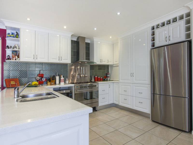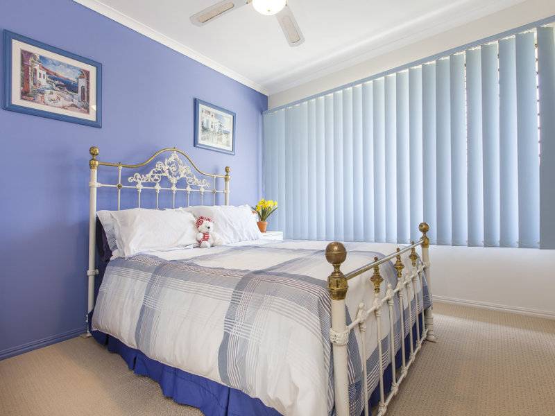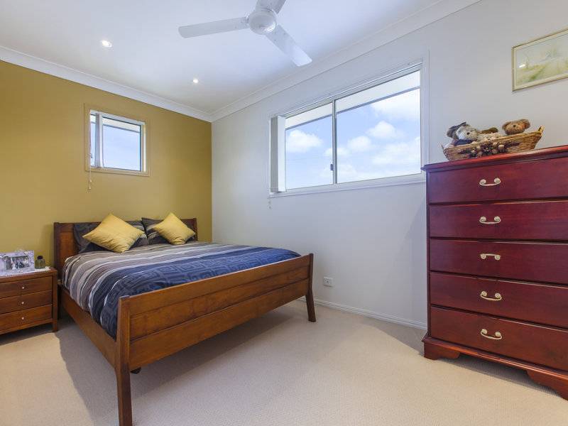 The modern kitchen is positioned perfectly to entertain, with its high quality Corian bench tops, bright contoured doors and stainless steel appliances. Downstairs offers two double bedrooms both featuring built-ins and easy access to the main bathroom, large powder room, separate toilet and open plan study. The third bedroom upstairs is similar in size and features, overlooking the canal in the distance.