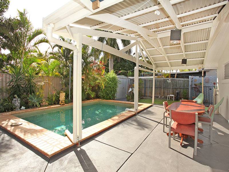 Relax in the covered entertaining area while the children swim in the pool.